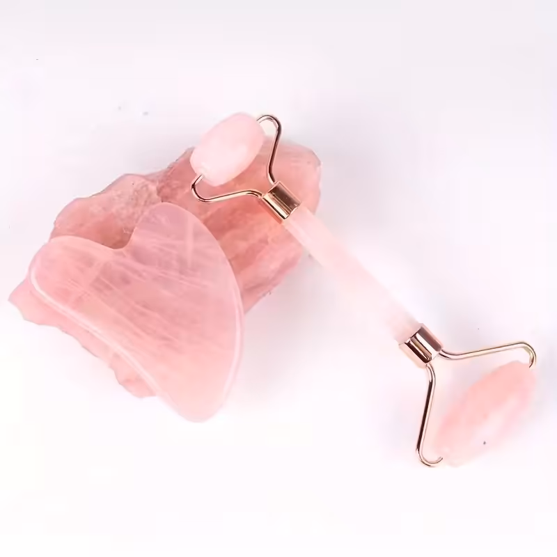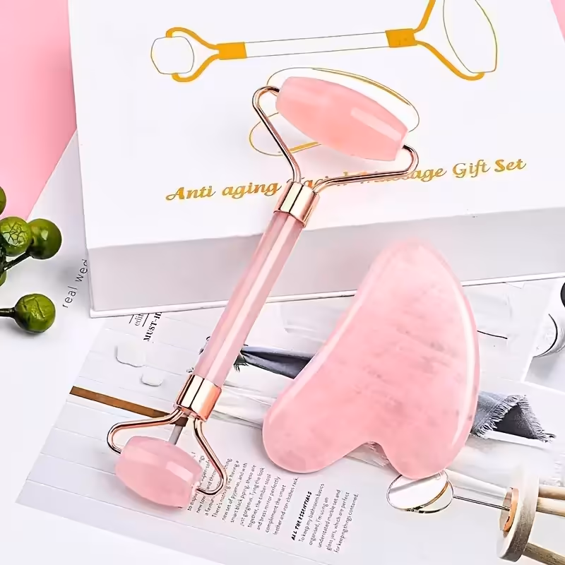 . الأداة الاولى تتضمن طرفين يمكن استخدامهما لتدليك مناطق مختلفة من الوجه والجسم. الطرف الأول عادة يكون ناعمًا ومصممًا لتدليك البشرة برفق، بينما الطرف الآخر يمكن أن يكون أكثر صلابة أو مدببًا لزيادة الضغط في المناطق التي تحتاج إلى تدليك أعمق، مثل حول العينين أو خطوط الوجه.
