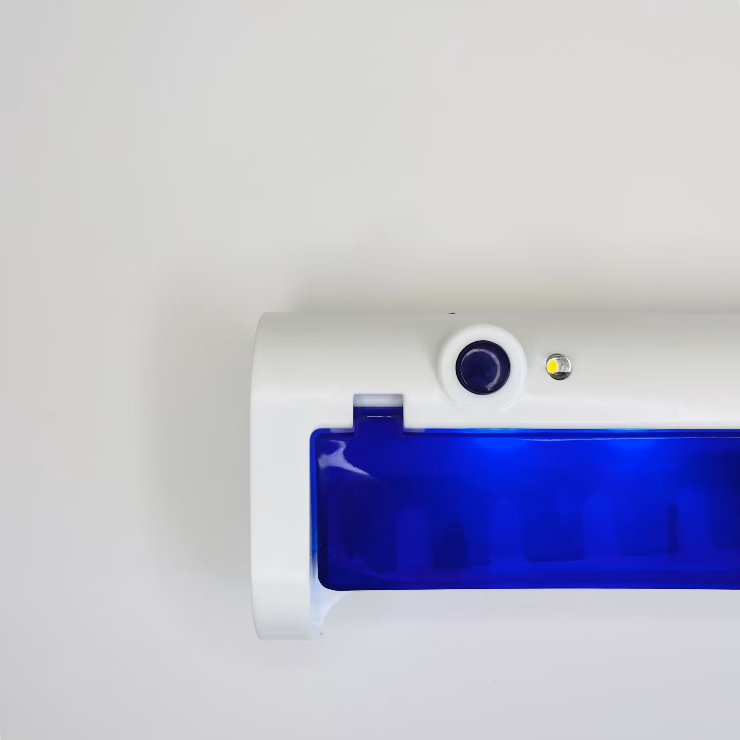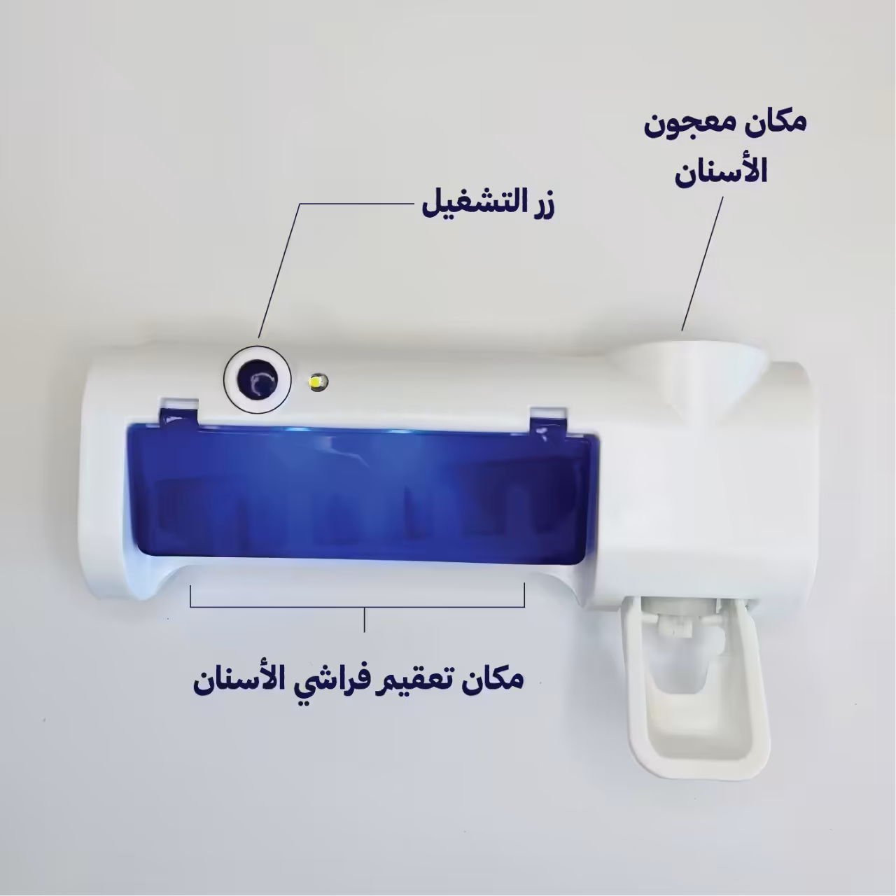 آلة تعقيم فرشاة الأسنان باللون الابيض والبنفسجي هي جهاز يستخدم لتعقيم فرش الأسنان بشكل فعال، مما يساعد في التخلص من البكتيريا والجراثيم التي قد تتراكم على الشعيرات بعد استخدامها.
