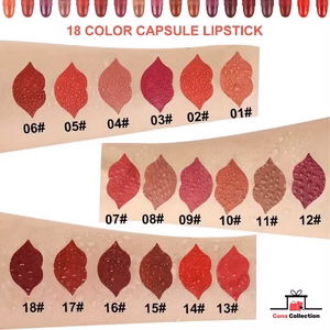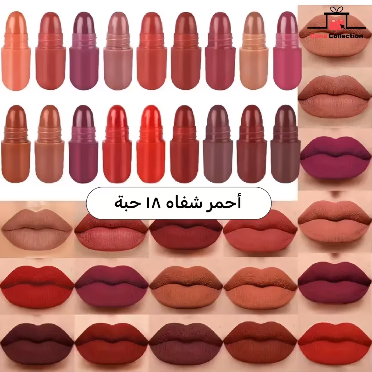 مجموعة من 18 كبسولة أحمر شفاه ملونة هي مجموعة شاملة تضم مجموعة متنوعة من الألوان والصيغ التي توفر لك تجربة مميزة للعناية بالشفاه.