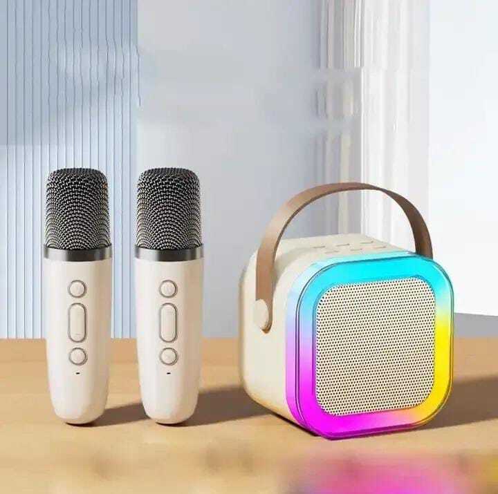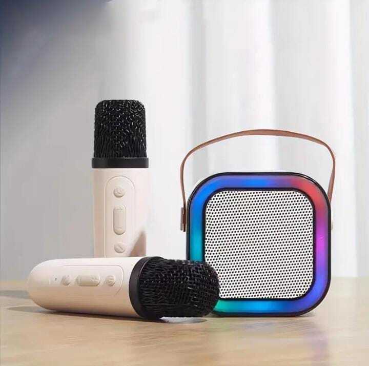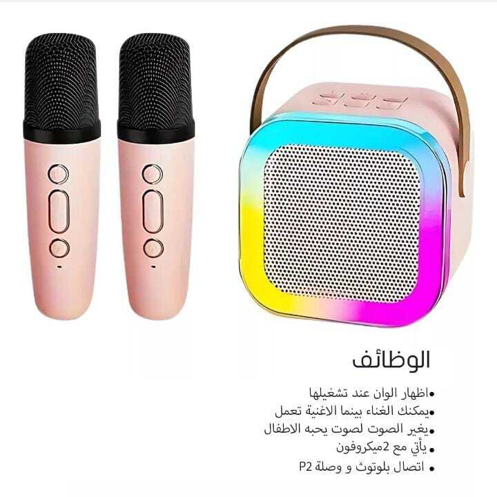 سماعة سبيكر مع 2 ميكروفون محمول هي جهاز صوتي متعدد الاستخدامات يجمع بين قدرة الصوت الاستيريو القوية وميزة الميكروفونات المدمجة لتحسين تجربة الصوت والتفاعل.