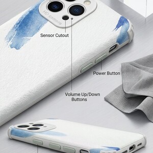يتميز هذا الكفر بتصميم تجريدي يدمج درجات الأزرق السماوي والبنفسجي الهادئ، مما يمنح هاتفك مظهراً فريداً يشبه لوحات الألوان المائية. الطبقة الخارجية ذات ملمس “محكم” (Textured) تمنع الانزلاق وتضيف لمسة من الفخامة.