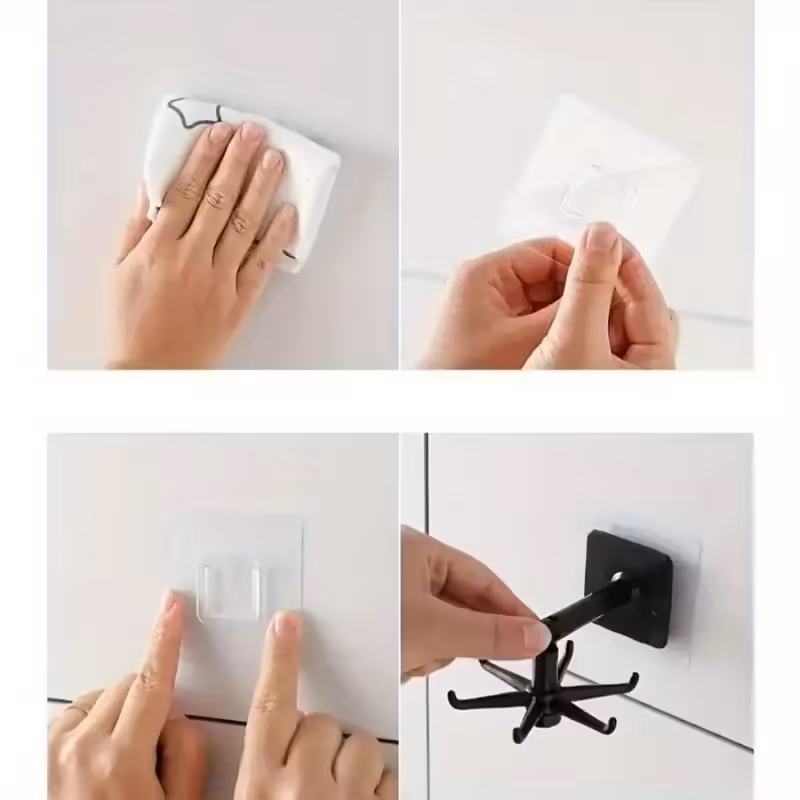 – يتم تثبيت الحامل على الجدار باستخدام لاصق قوي.