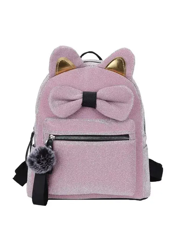 حقيبة مبتكرة لامعة بتصميم رسوم كارتون أذن و مزخرفة بقوس مع كرات مخملية حلية