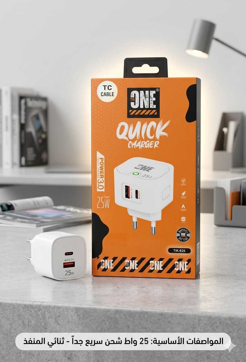 هل تعبت من الشواحن البطيئة؟ مع رأس الشحن من Tik ONE، ستحصل على القوة الكاملة لسرعة 25 واط في راحة يدك.
