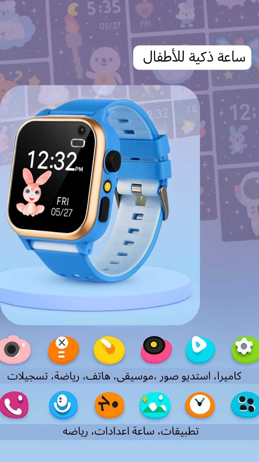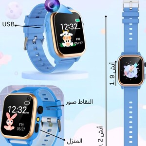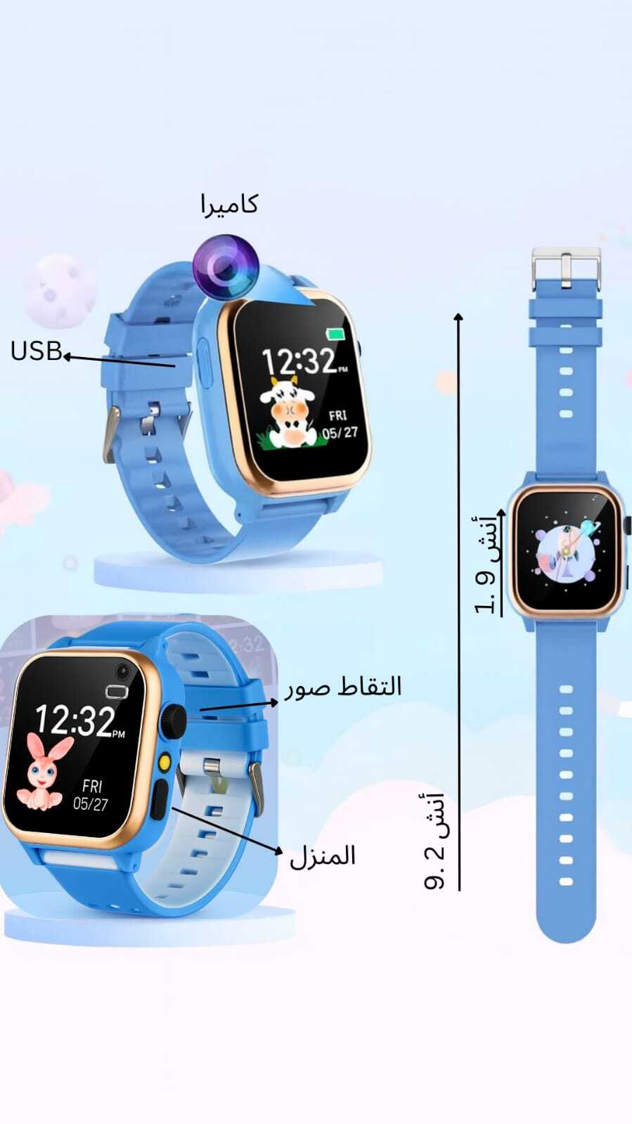 ساعة ذكية مخصصة للأطفال تجمع بين الترفيه والتعليم: مكالمات صوتية، العاب تعليمية، كاميرا عالية الدقة، تسجيل فيديو، دعم لغات متعددة، مع شحن USB سهل وسوار سيليكون مريح.