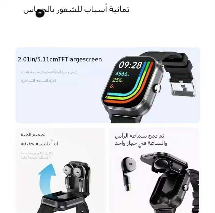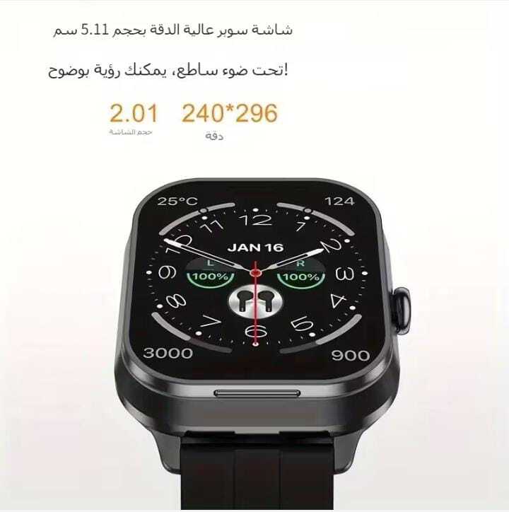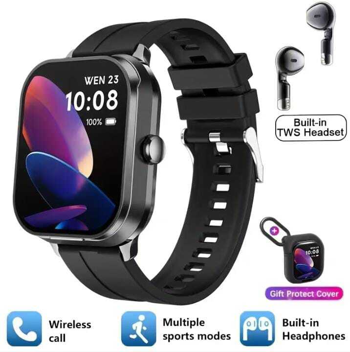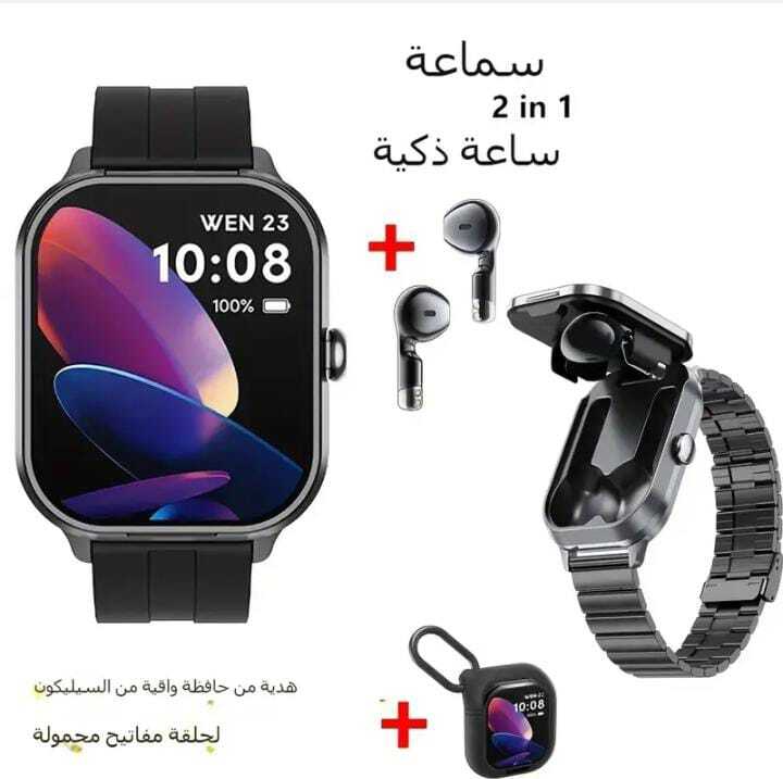 ساعة ذكية للرجال Paearofero مع سماعات TWS، سلسلة مفاتيح وحافظة سيليكون – شاشة HD 5.11 سم، اتصال لاسلكي، سوار من الفولاذ المقاوم للصدأ، أسلوب الحركة