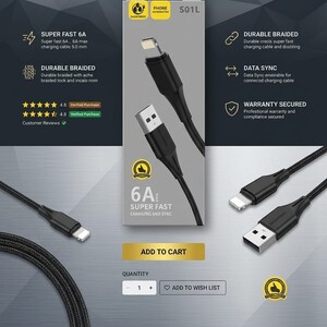 متانة قصوى (DURABLE BRAIDED): الجزء الخارجي من السلك مضفر بمواد قوية تجعله أكثر مقاومة للتآكل، الانحناء، والتمزق مقارنة بالأسلاك التقليدية، مما يطيل عمر المنتج.