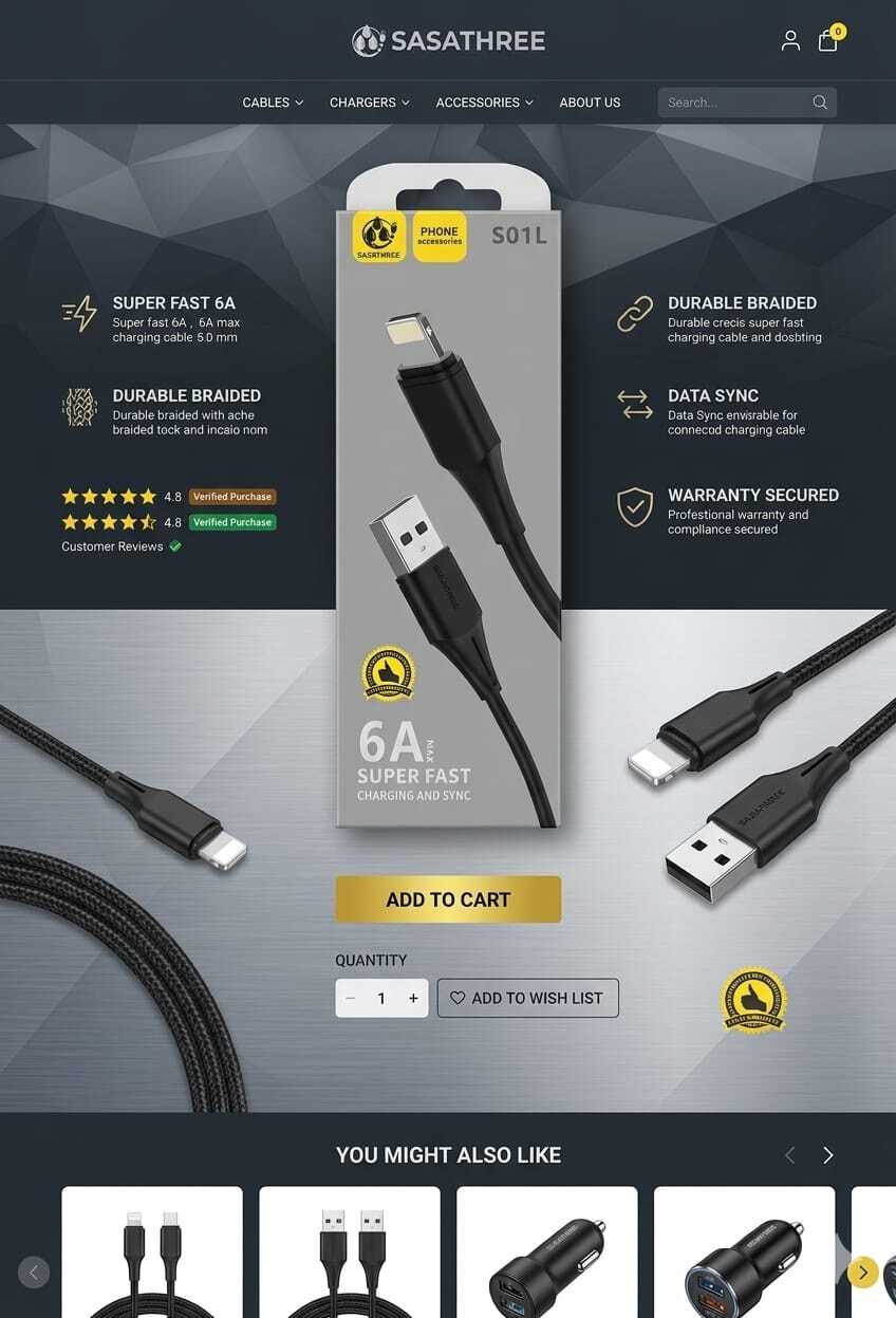 ارتقِ بتجربة الشحن إلى المستوى التالي مع سلك شحن ومزامنة “SASATHREE” 6A (طراز S01L). تم تصميم هذا السلك لتقديم أداء لا هوادة فيه، حيث يجمع بين الشحن الفائق السرعة والمتانة الاستثنائية ليكون رفيقك المثالي لجهازك.