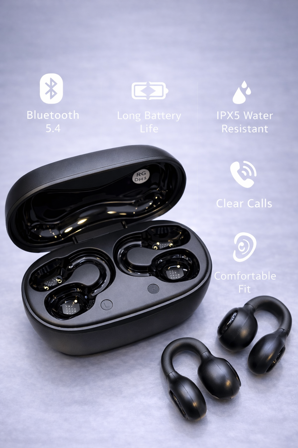 التصميم: تتميز بتصميم مشبك الأذن المفتوح الذي ينقل الصوت عبر الاهتزاز (توصيل عظمي)، مما يتيح لك سماع الأصوات المحيطة بك أثناء الاستخدام. هذا التصميم خفيف الوزن للغاية ومريح للارتداء لفترات طويلة دون ألم.