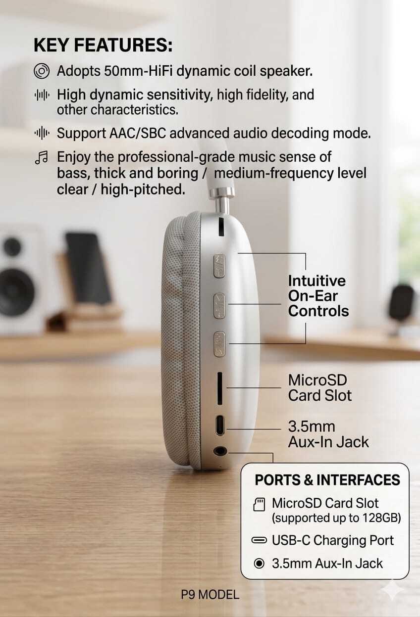 استمتع بتجربة صوتية استثنائية مع سماعة الرأس اللاسلكية P9.
