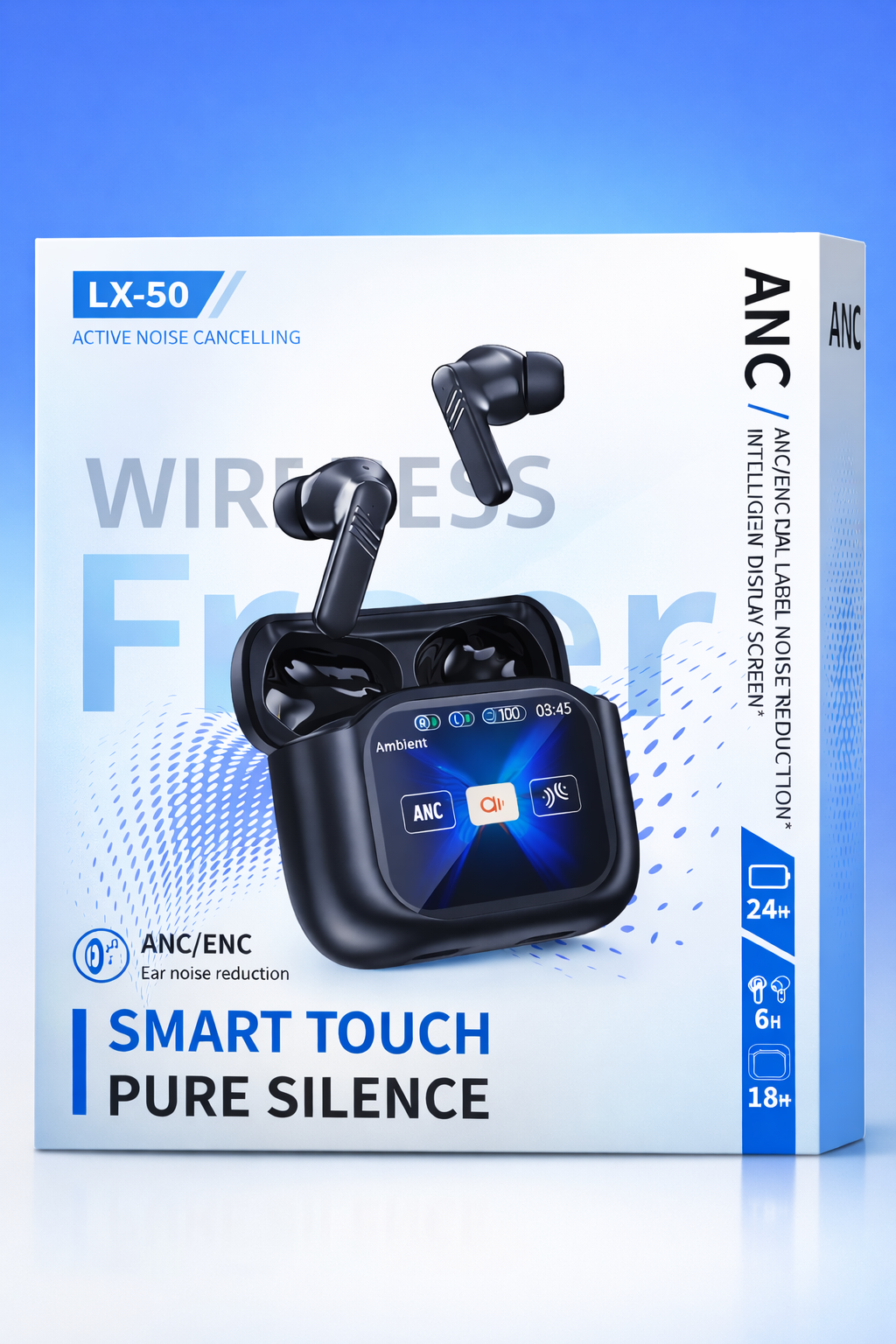 سماعات الرأس LX-50 ، سماعات أذن تعمل باللمس ومزودة بتقنية إلغاء الضوضاء النشطة (ANC) وتقليل ضوضاء الميكروفون المزدوج (ENC).