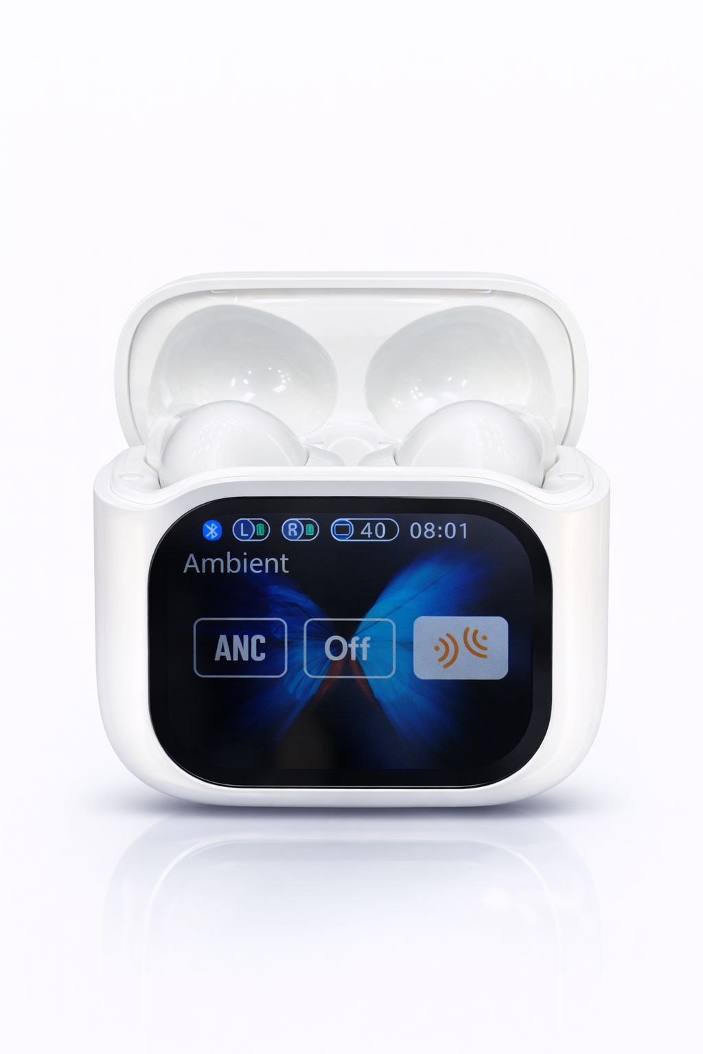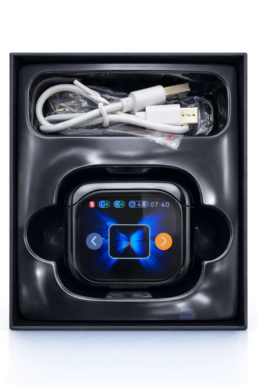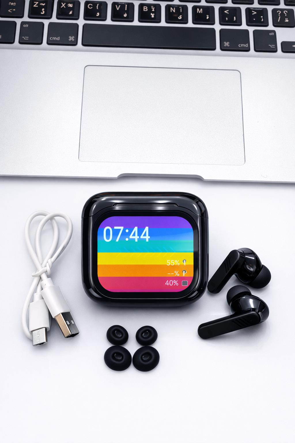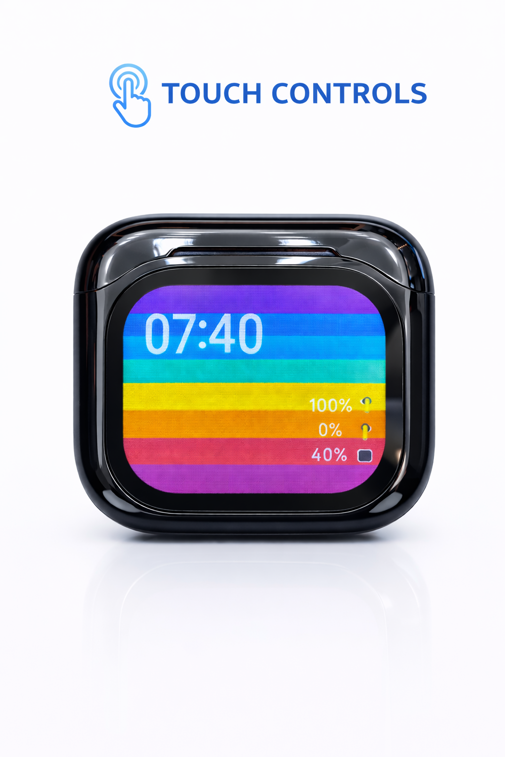 شاشة عرض ذكية: تحتوي علبة الشحن على شاشة عرض ذكية تعمل باللمس بالكامل (Full-color touch screen) لعرض حالة البطارية وإعدادات التشغيل.