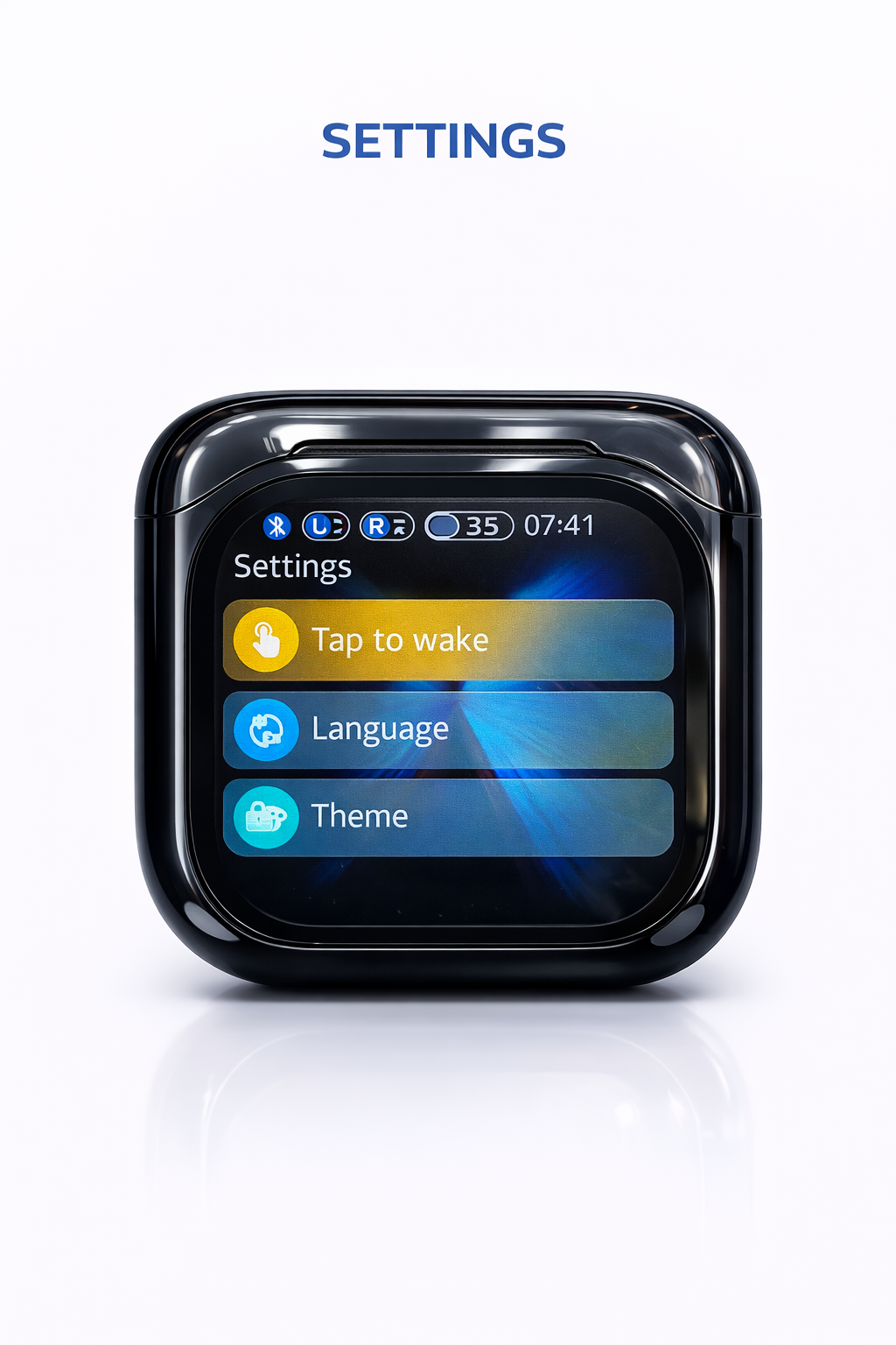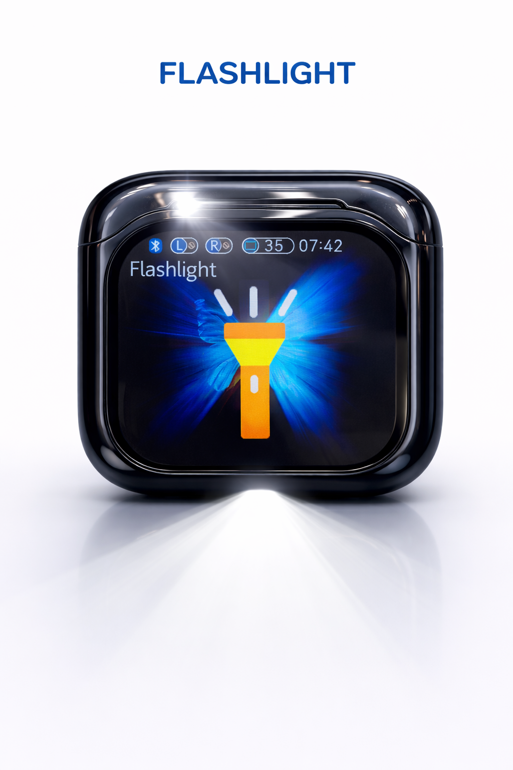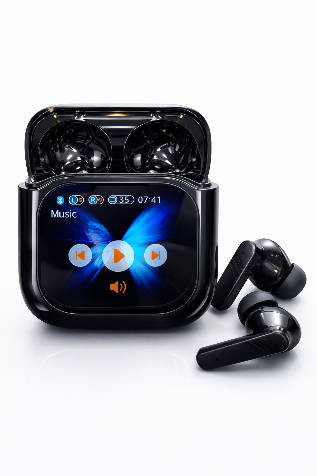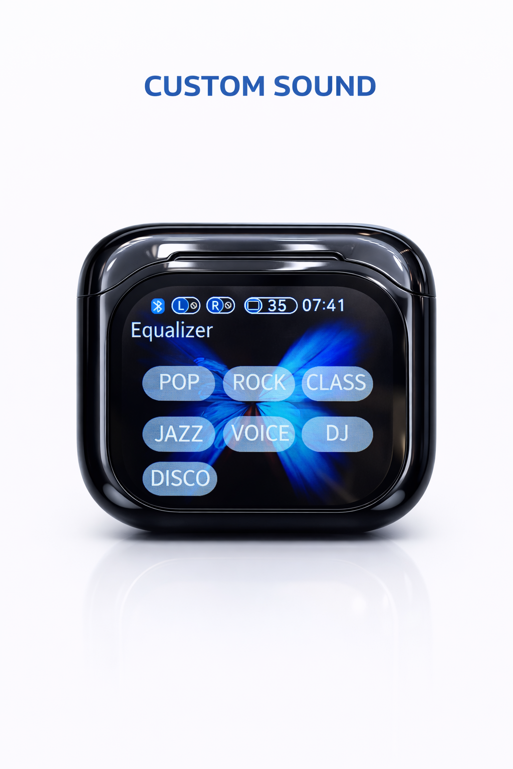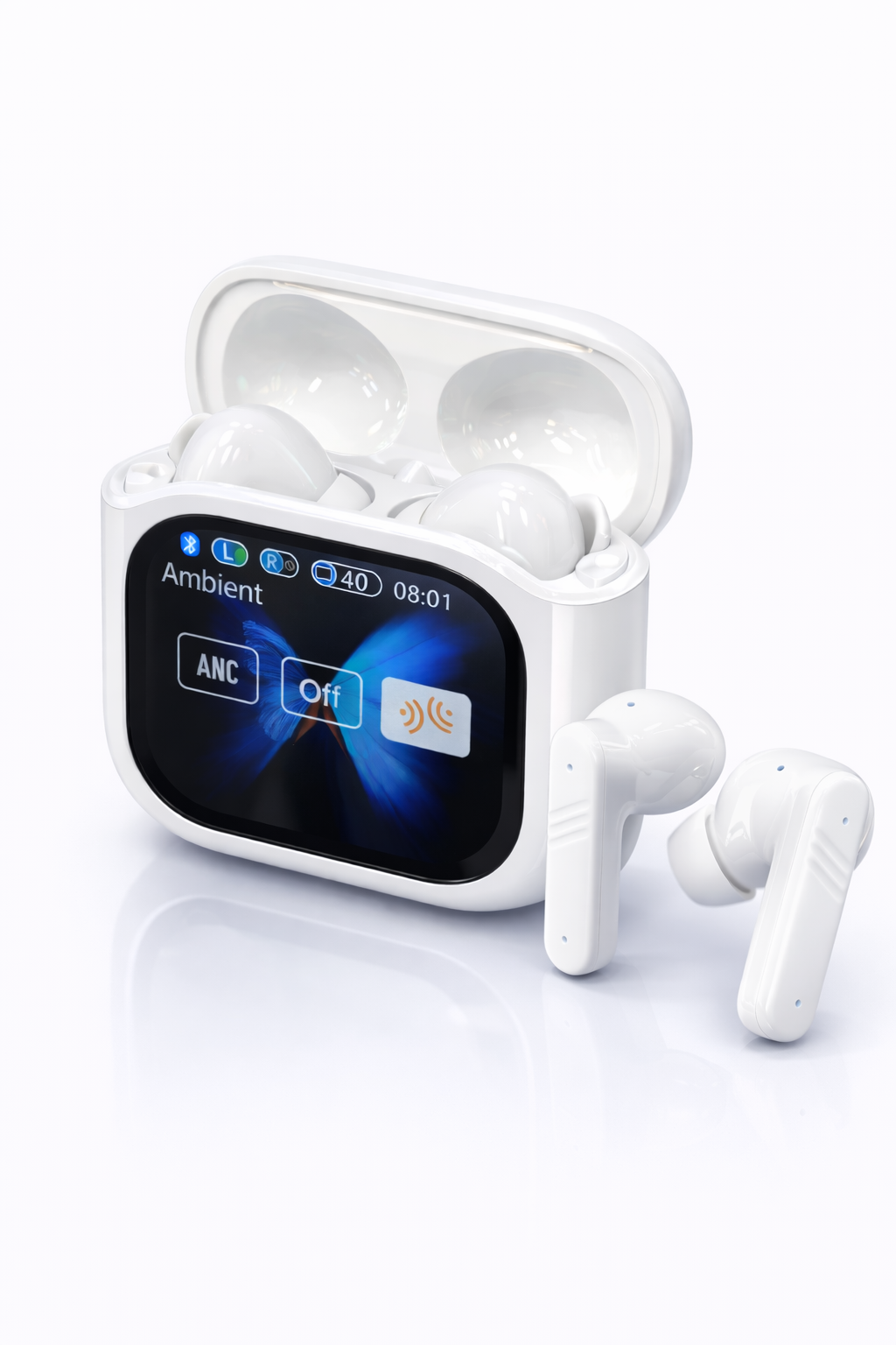 شاشة عرض ذكية: تحتوي علبة الشحن على شاشة عرض ذكية تعمل باللمس بالكامل (Full-color touch screen) لعرض حالة البطارية وإعدادات التشغيل.