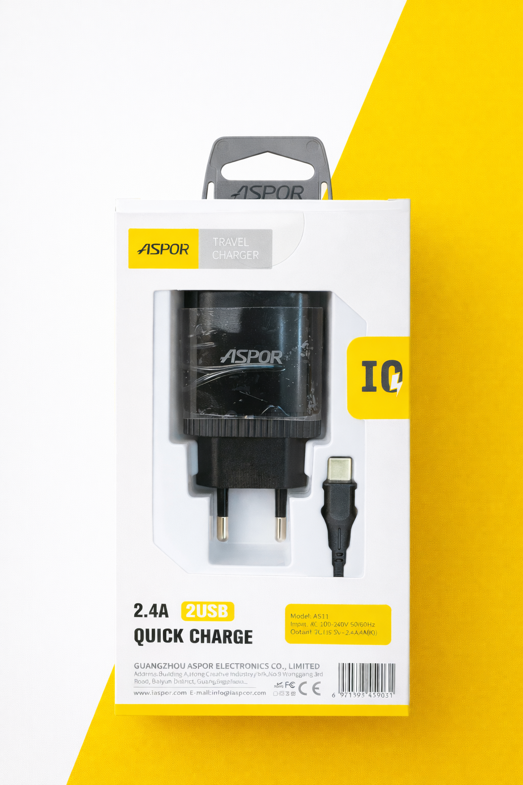 شاحن Aspor A811 هو شاحن سريع ومزدوج المنافذ USB.