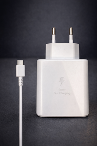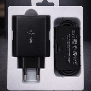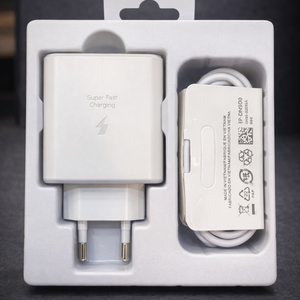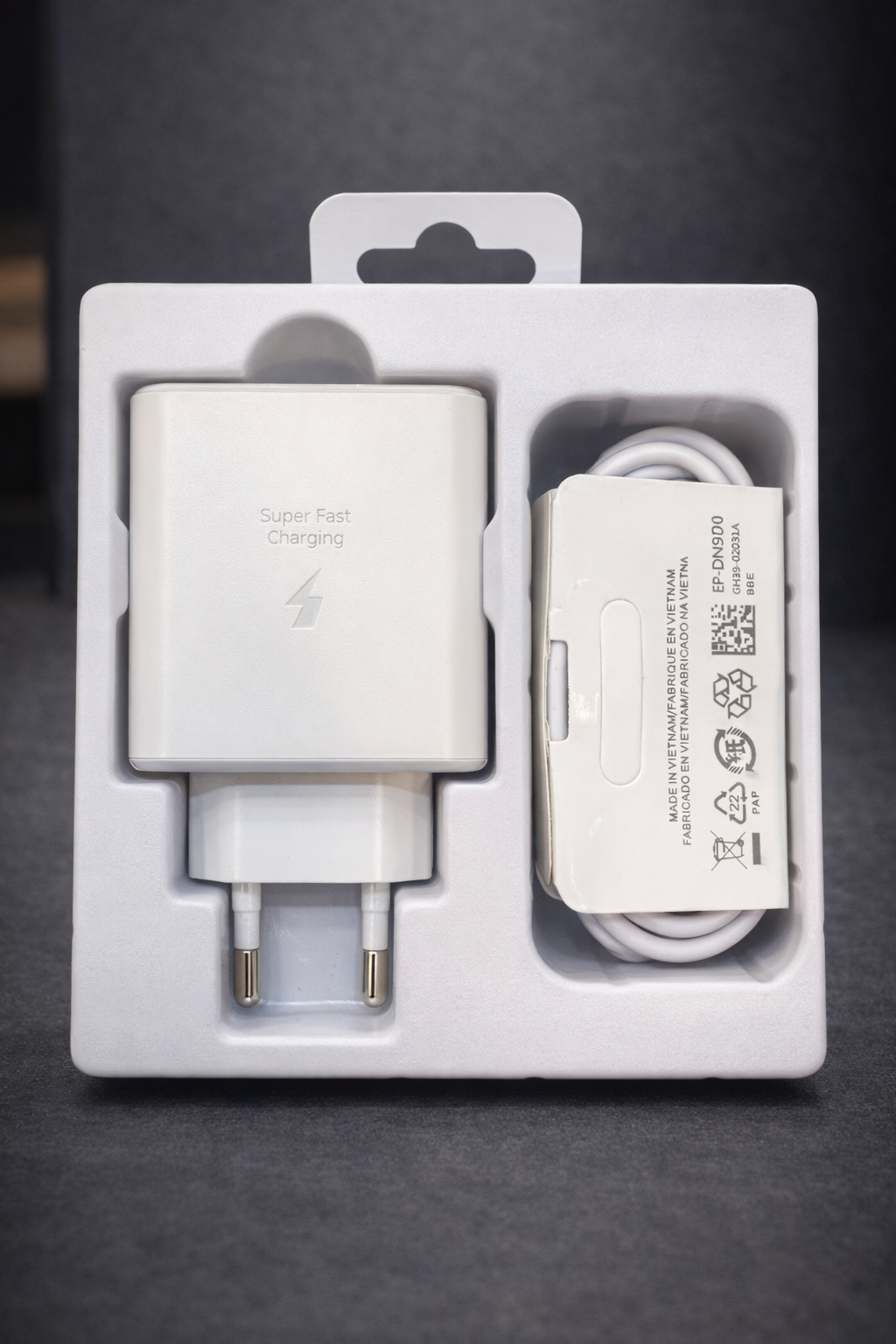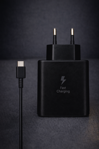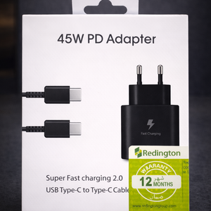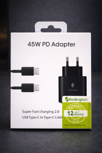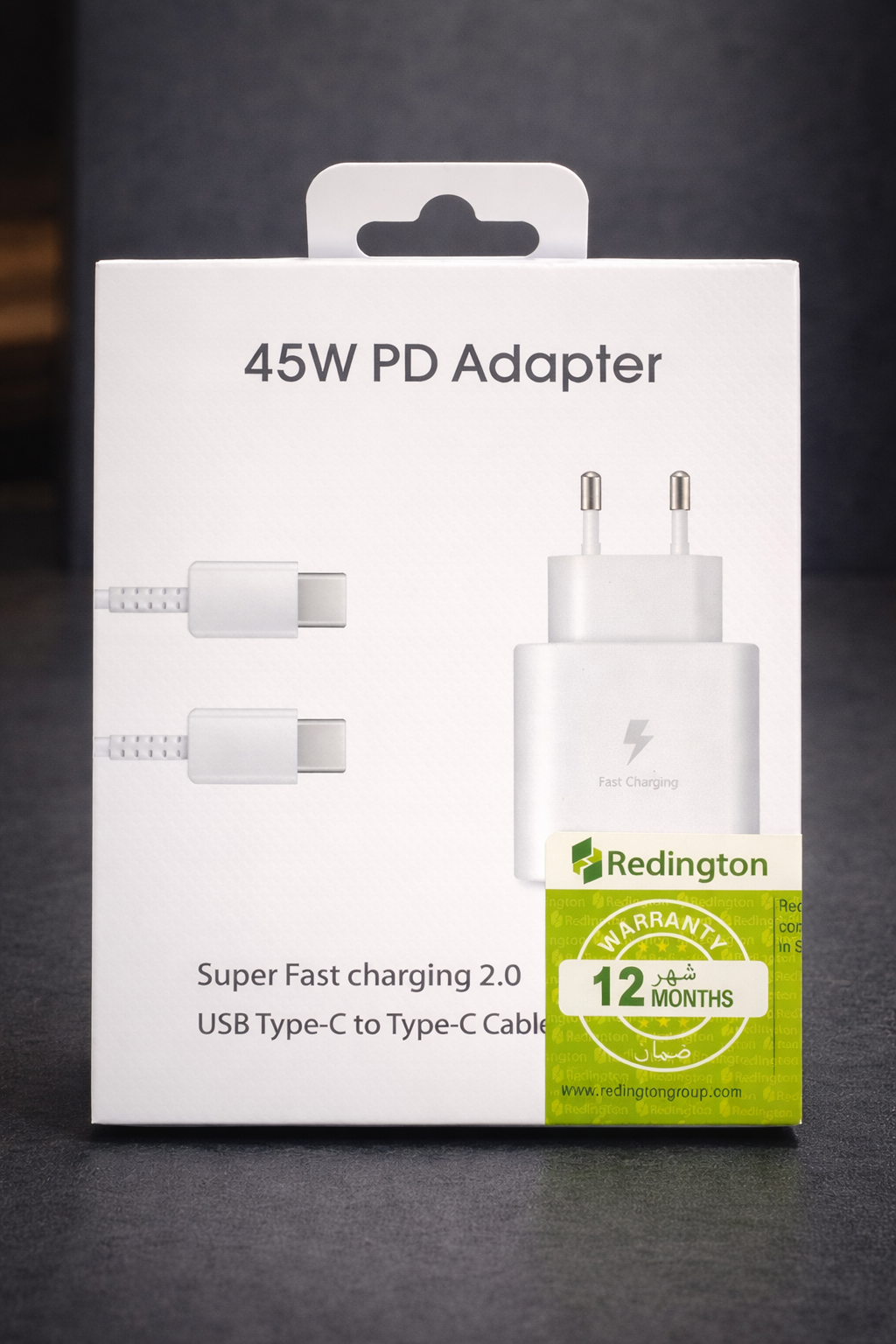 شاحن تايب سي بقوة 45 واط بتقنية توصيل الطاقة (PD)، مصمم للشحن السريع والفعال لمختلف الأجهزة الحديثة. يأتي مع كابل USB Type-C إلى Type-C لضمان التوافق مع معظم الأجهزة التي تدعم هذه المنافذ.