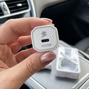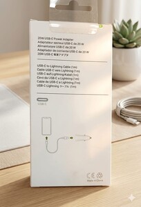 محتوى العلبة: رأس الشاحن + كابل USB-C إلى Lightning بطول 1 متر.