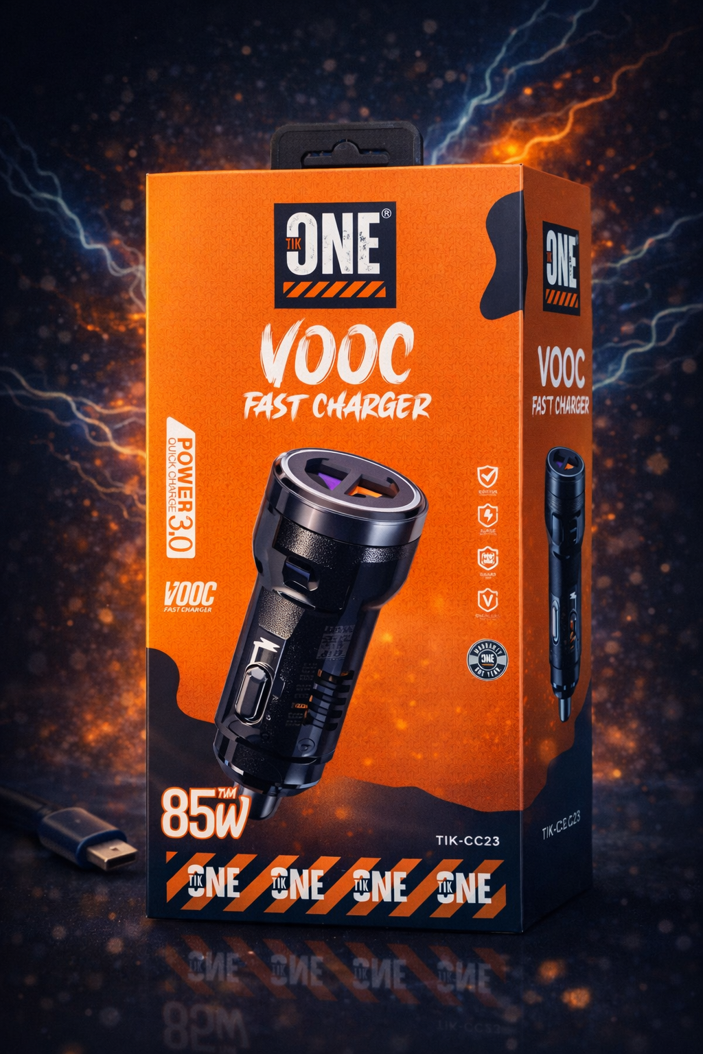 ”حافظ على شحن أجهزتك بالكامل أثناء تنقلاتك مع شاحن السيارة فائق السرعة ONE TIK VOOC بقدرة 85 واط!