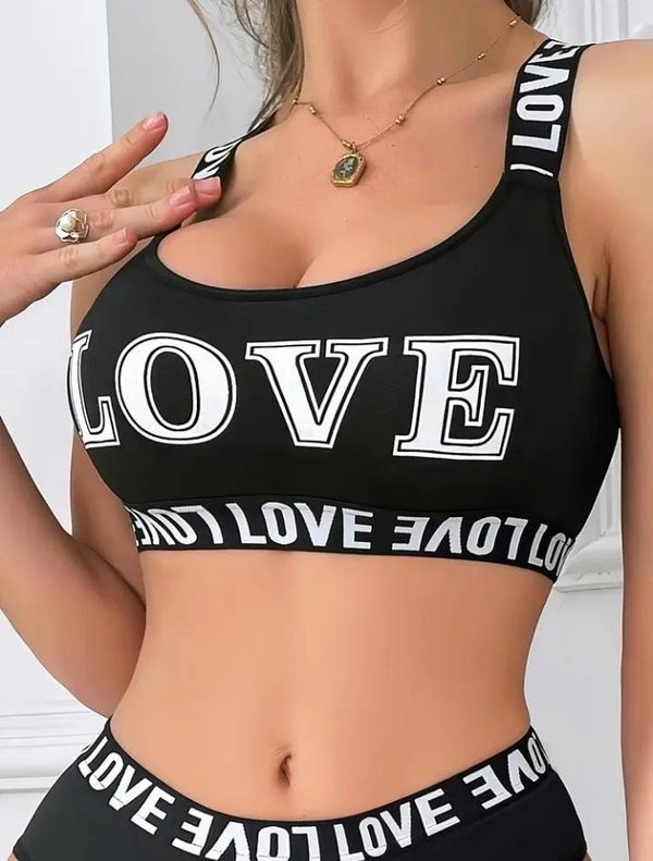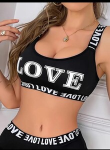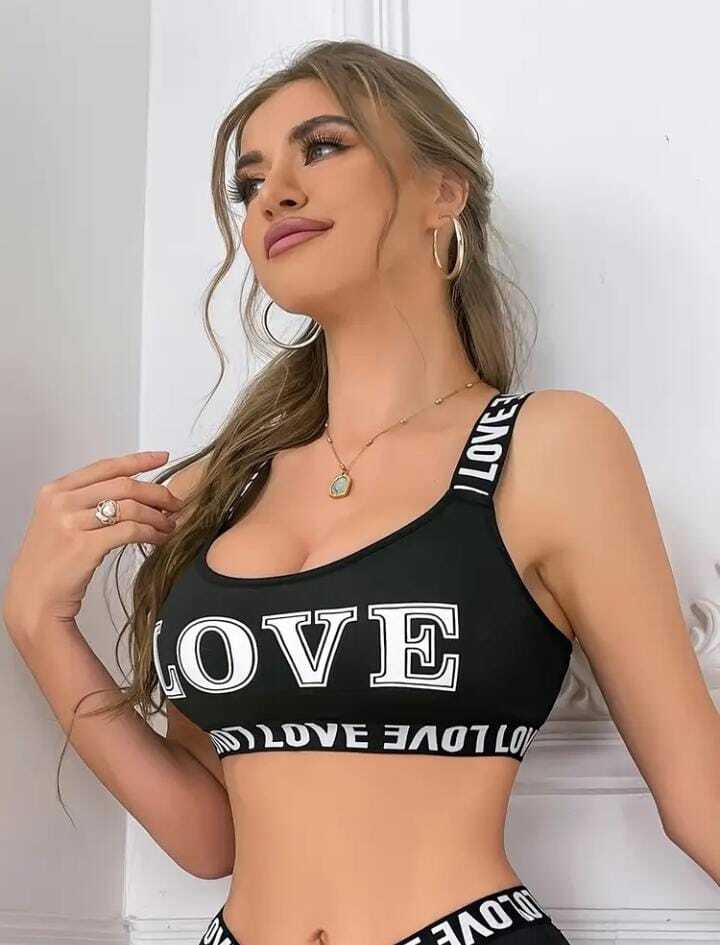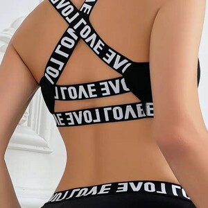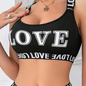 صدرية رياضية نسائية مثيرة بطباعة LOVE، عالية المرونة وغير شفافة، بتصميم خلفي متقاطع يمنحك الراحة والدعم المثالي لليوغا واللياقة.