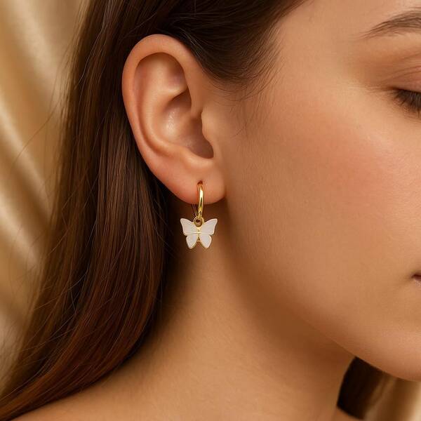 تصميم أنيق وجذاب: حلقات فراشة مرصعة باللؤلؤ تضيف لمسة رقي وأنوثة لإطلالتك.