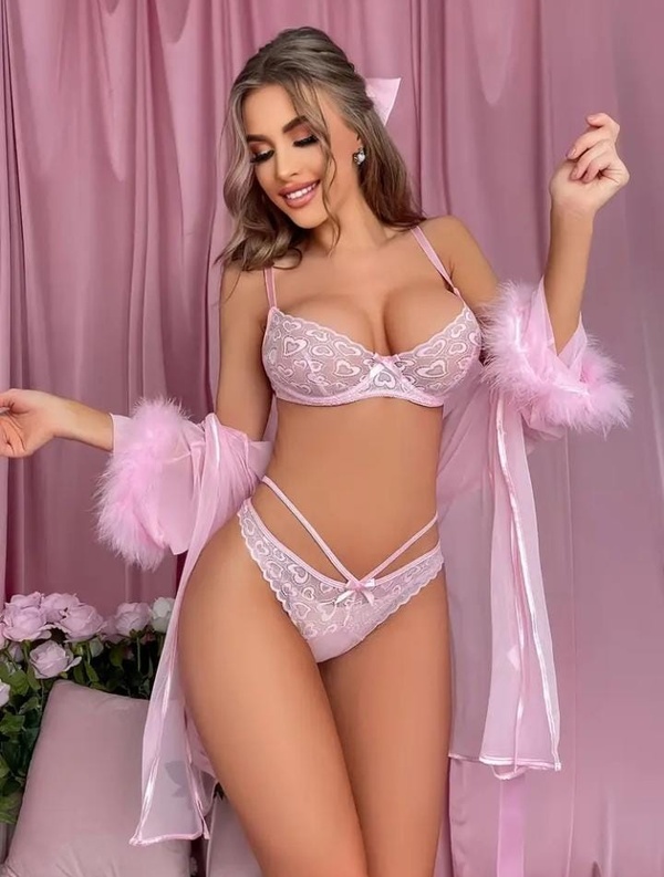 طقم دانتيل أنيق بتصميم قلب جذاب، يجمع بين الرقة والإغراء بأسلوب أوروبي عصري، مثالي للمناسبات الخاصة واللحظات الرومانسية.