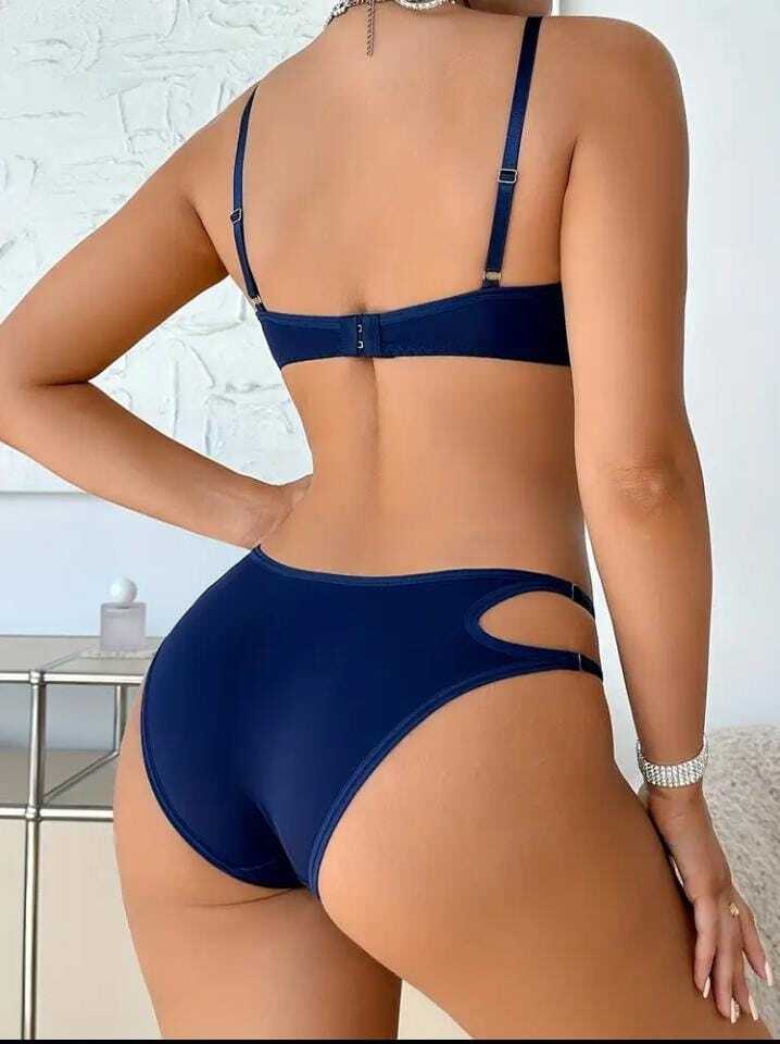 طقم ملابس داخلية أنيق للنساء بلون أزرق داكن، يتكوّن من حمالة صدر بدون حمالات وسروال عالي الخصر، بدون حشوات، مريح وناعم على البشرة – مثالي للاستخدام اليومي والأجسام المنحنية.