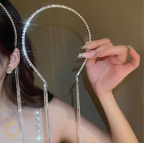 عصابة رأس فضية مرصعة بالراين مع شرابة ، إكسسوار شعر أنيق يعكس الأسلوب البوهيمي الفاخر. تتميز بتصميمها الجذاب الذي يجمع بين الفخامة واللمسة العصرية، مما يجعلها إضافة رائعة لأي إطلالة.