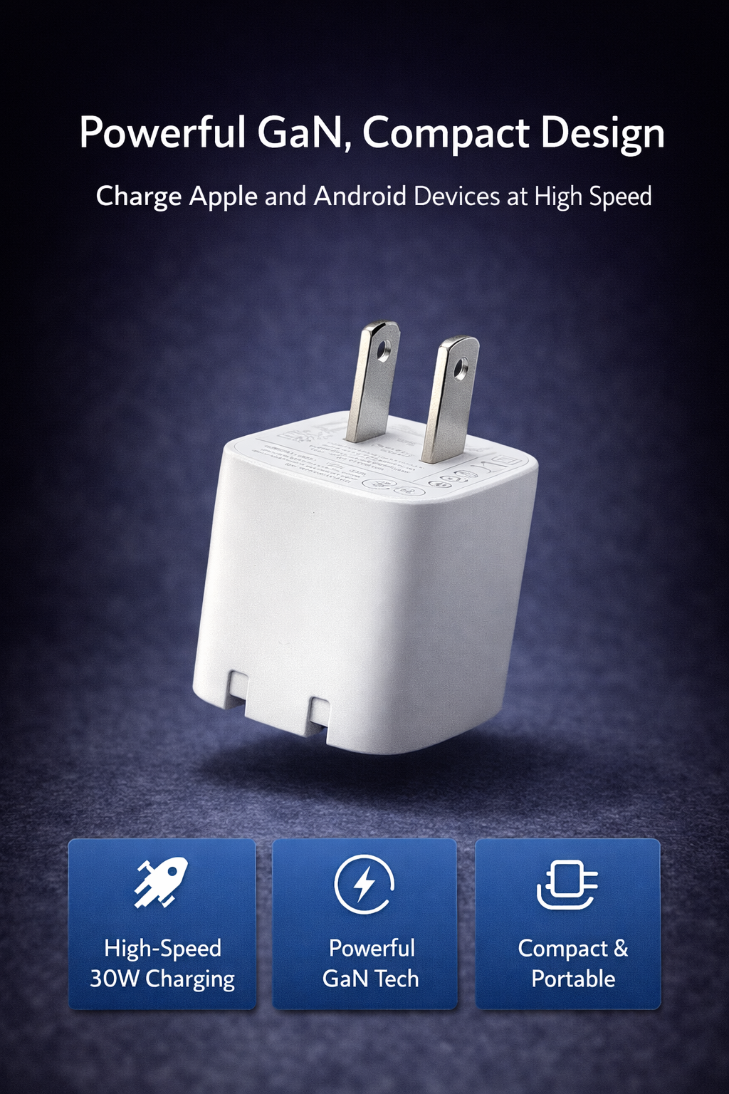 GaN (نيتريد الغاليوم): تتيح هذه التقنية تصميمًا أصغر حجمًا وأكثر كفاءة للشاحن.