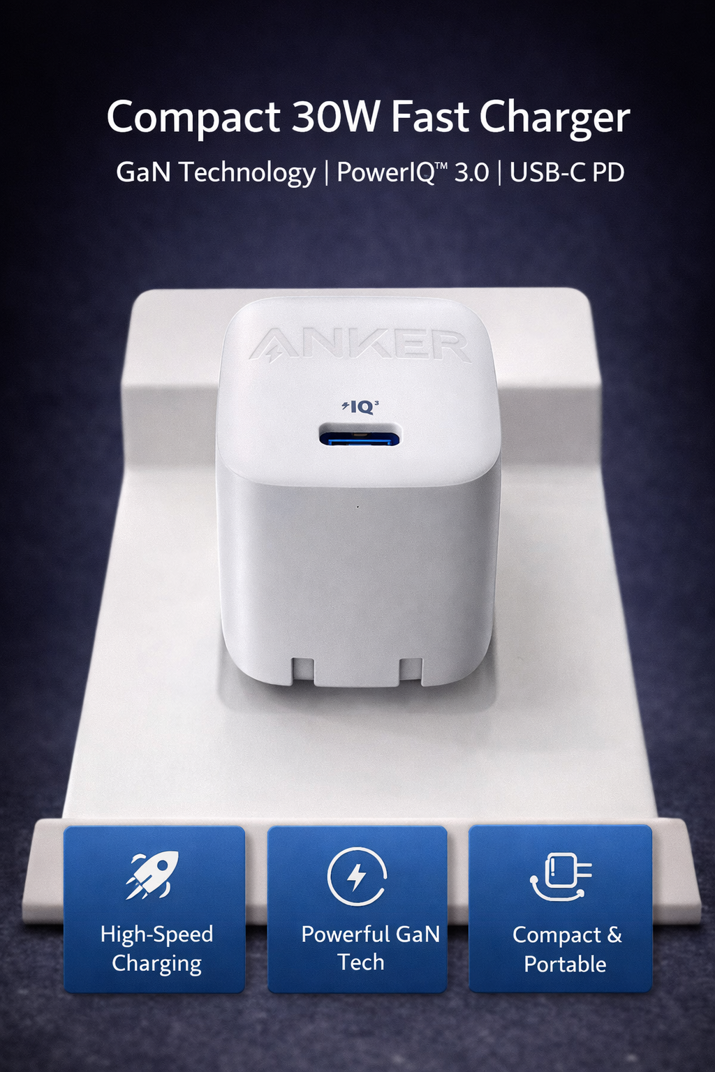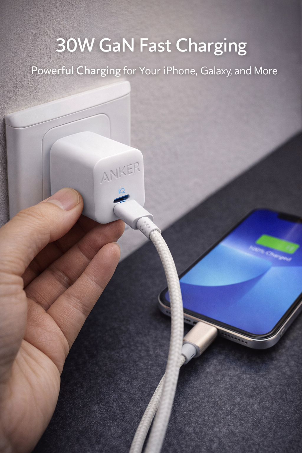 شاحن Anker 313 (30 واط) ،شاحن حائط USB-C مدمج وفعال يوفر شحنًا عالي السرعة لمجموعة واسعة من الأجهزة.