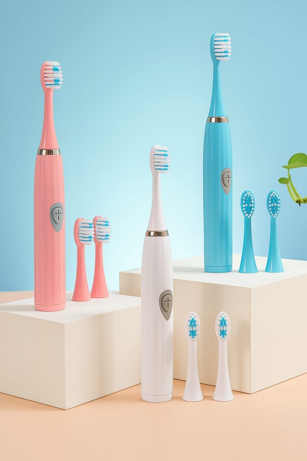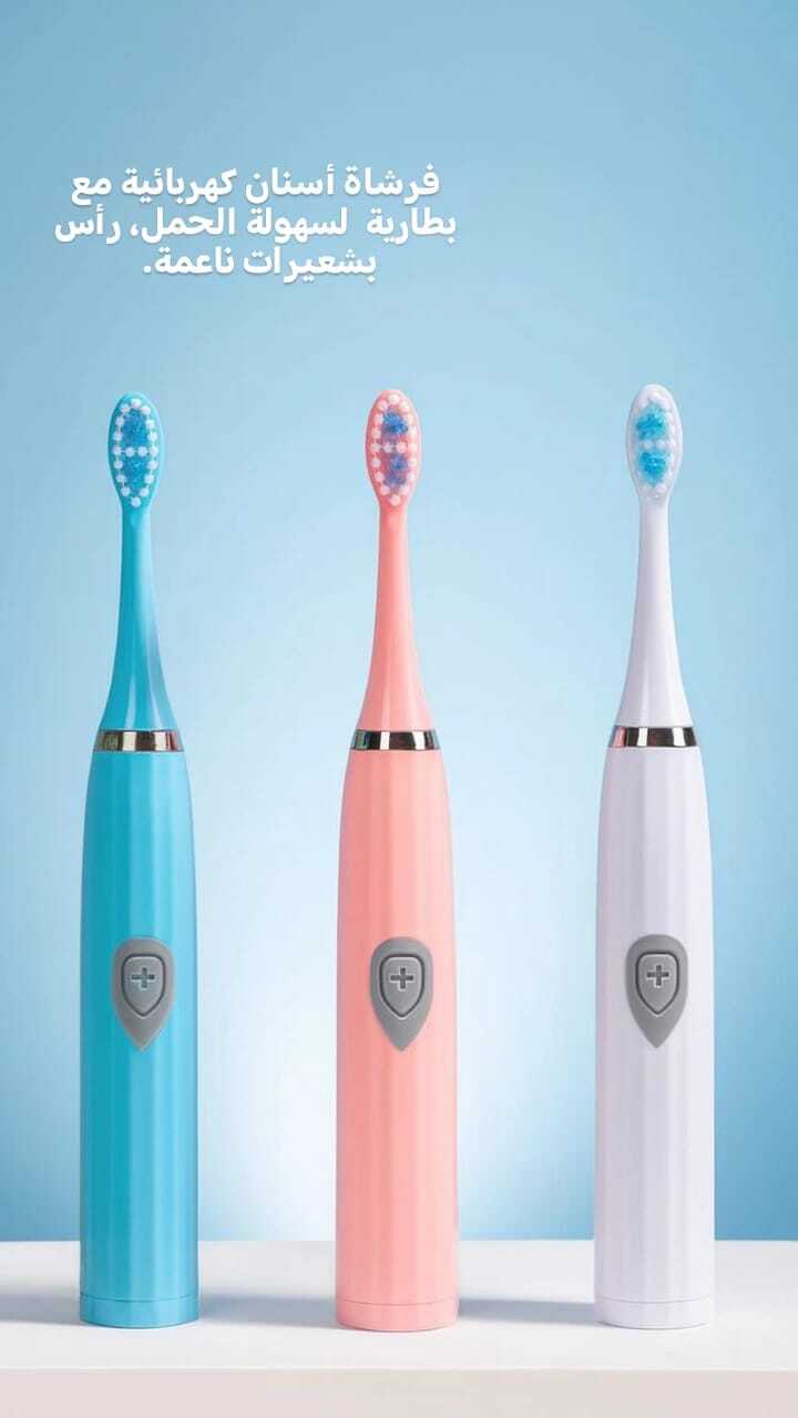 فرشاة أسنان كهربائية خفيفة وسهلة الاستخدام تعمل ببطارية AA، بشعيرات ناعمة ولطيفة على اللثة، مثالية للعناية اليومية أثناء السفر أو الاستخدام المنزلي.