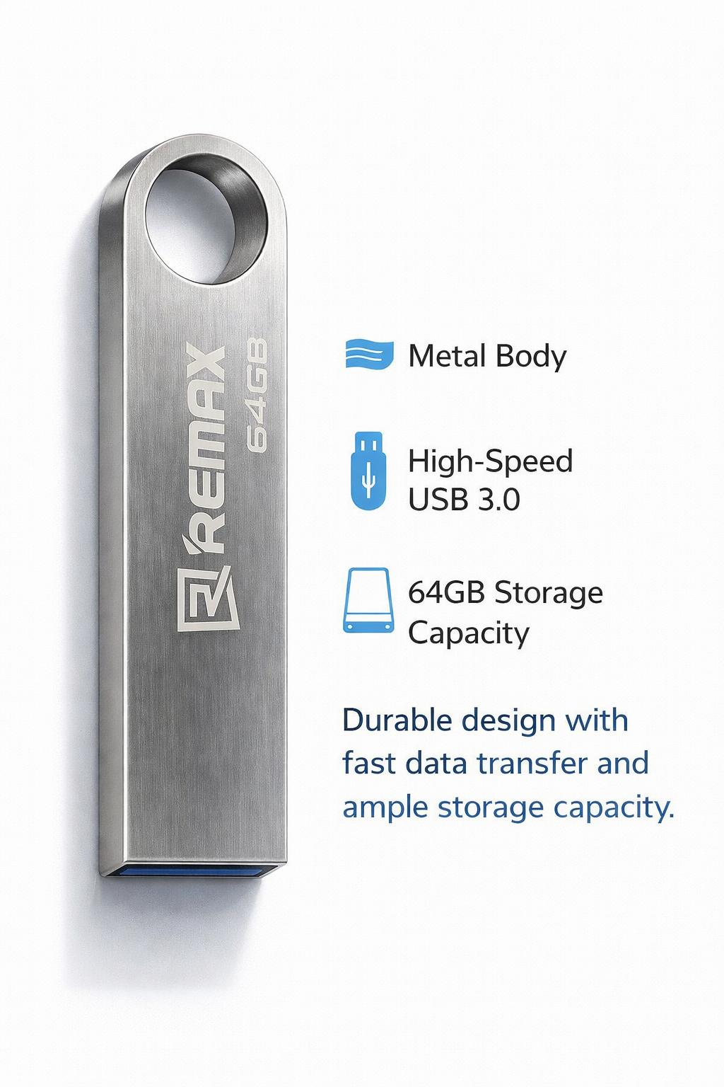 احصل على محرك أقراص فلاش USB 3.0 عالي الأداء من ريماكس ، تصميم معدني متين، سرعات فائقة، ومساحة تخزين واسعة لجميع ملفاتك الهامة.
