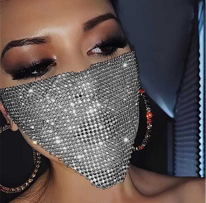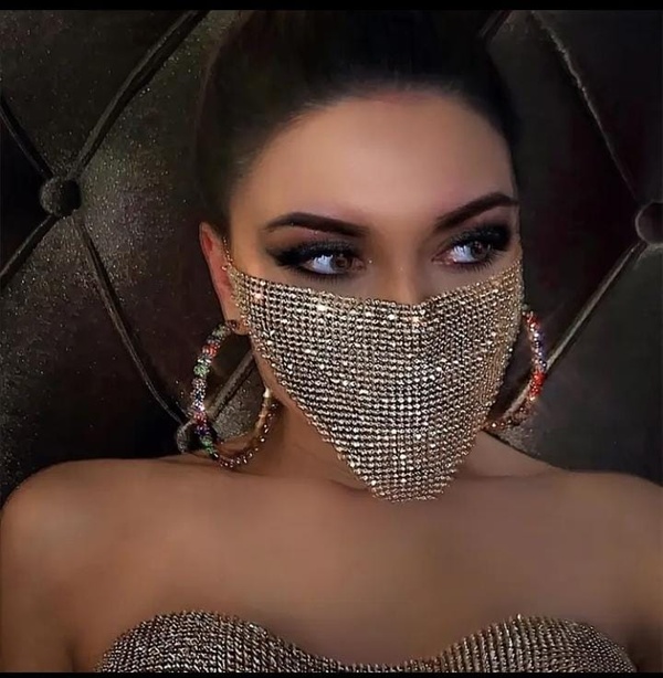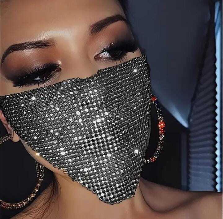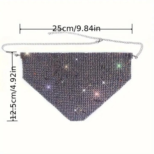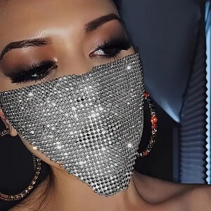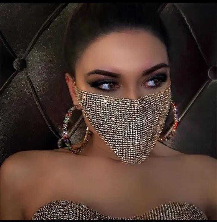 أضيفي لمسة من السحر الشرقي إلى إطلالتك مع قناع الراينستون اللامع المصمم خصيصًا للنساء. يتميز هذا القناع بتفاصيل براقة من الراينستون مع مجوهرات العملات المعدنية وحجاب شبكي لامع يمنحك مظهراً فريداً يخطف الأنظار.