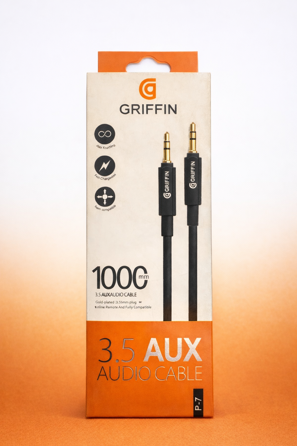 كابل الصوت Griffin 3.5 AUX منتجًا مصممًا لتوصيل الأجهزة الصوتية المحمولة مثل الهواتف الذكية والأجهزة اللوحية ومشغلات MP3 بأنظمة الصوت المختلفة مثل أنظمة ستيريو السيارة أو أنظمة الترفيه المنزلية أو مكبرات الصوت المحمولة.