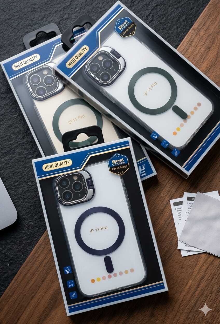 كفر UltraShield يجمع لك الاثنين. تصميم شفاف يبرز لون جهازك، مع حلقة MagSafe قوية للشحن اللاسلكي السريع، والأهم من هذا كله.. إطار الكاميرا يتحول لمسند (Kickstand) عشان تتابع مسلسلاتك أو تصور سيلفي براحة تامة!