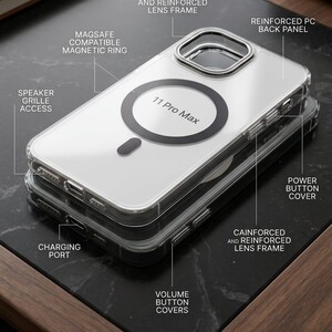 تصميم أنيق وشفاف: يحافظ على مظهر الهاتف الأصلي مع لمسات لونية فاخرة على إطار الكاميرا والحلقة المغناطيسية.