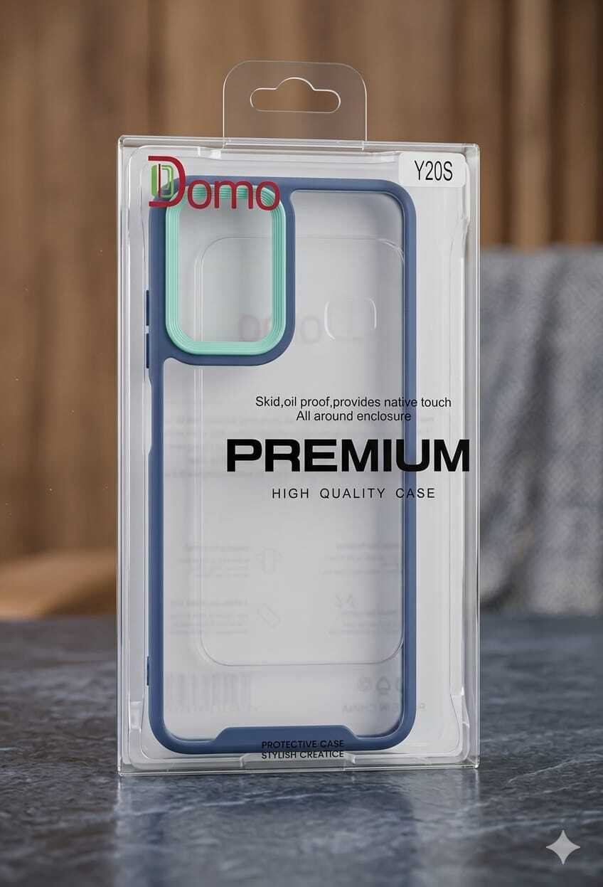 ارتقِ بتجربة استخدام هاتف Vivo Y20S مع غطاء الحماية Domo Premium. يتميز هذا الكفر بتصميم هجين يجمع بين الظهر الشفاف عالي النقاوة وبين الإطار المرن الملون، ليوفر لك حماية شاملة دون إضافة حجم زائد للهاتف.