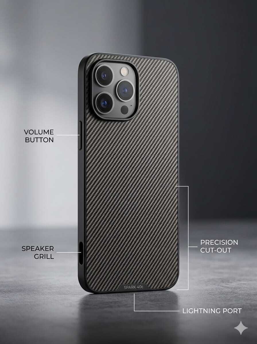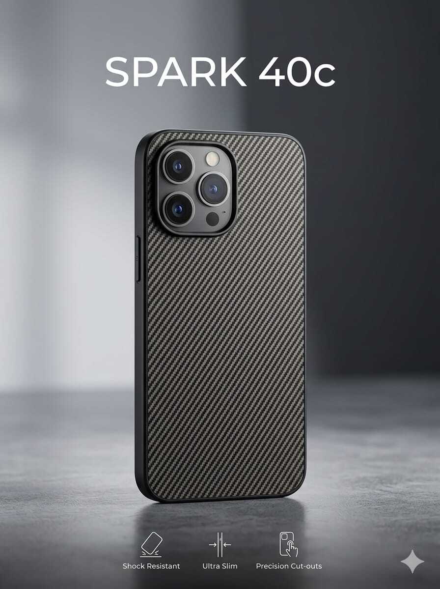 هل تبحث عن الحماية دون التضحية بالأناقة؟ كفر Spark 40c بتصميم الكاربون فيبر يمنحك المزيج المثالي بين القوة والخفة. ملمس ناعم، مظهر رياضي عصري، وحماية متكاملة تجعل هاتفك يبدو وكأنه قطعة فنية.