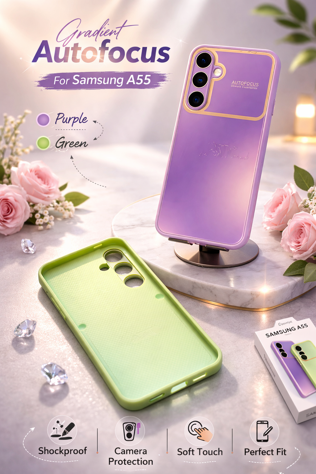 كفر Gradient Autofocus المصمم خصيصاً لهاتف Samsung A55 يجمع بين الحماية القوية والتصميم العصري الناعم.