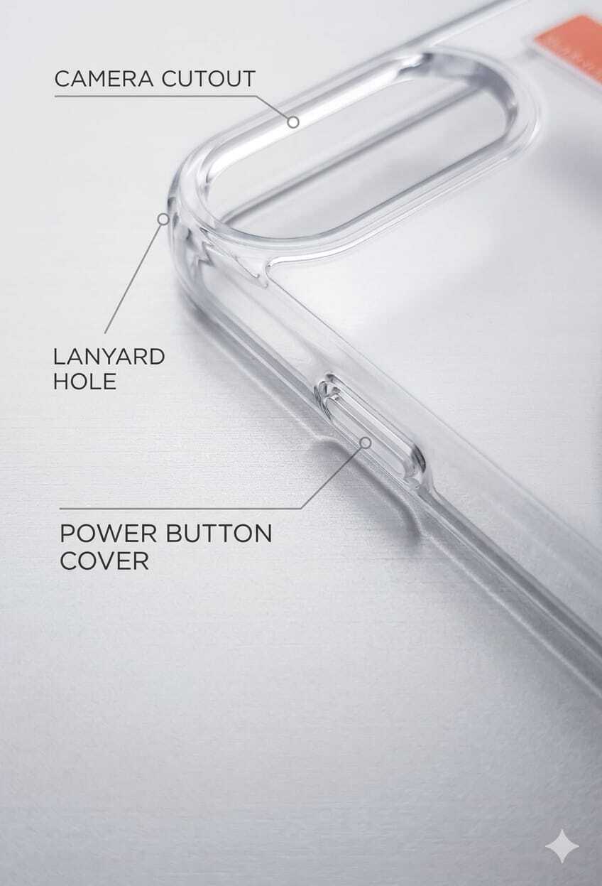 حماية الكاميرا المزدوجة: فتحة كاميرا دقيقة (Camera Cutout) مصممة بحواف بارزة لحماية العدسات من الاحتكاك المباشر.