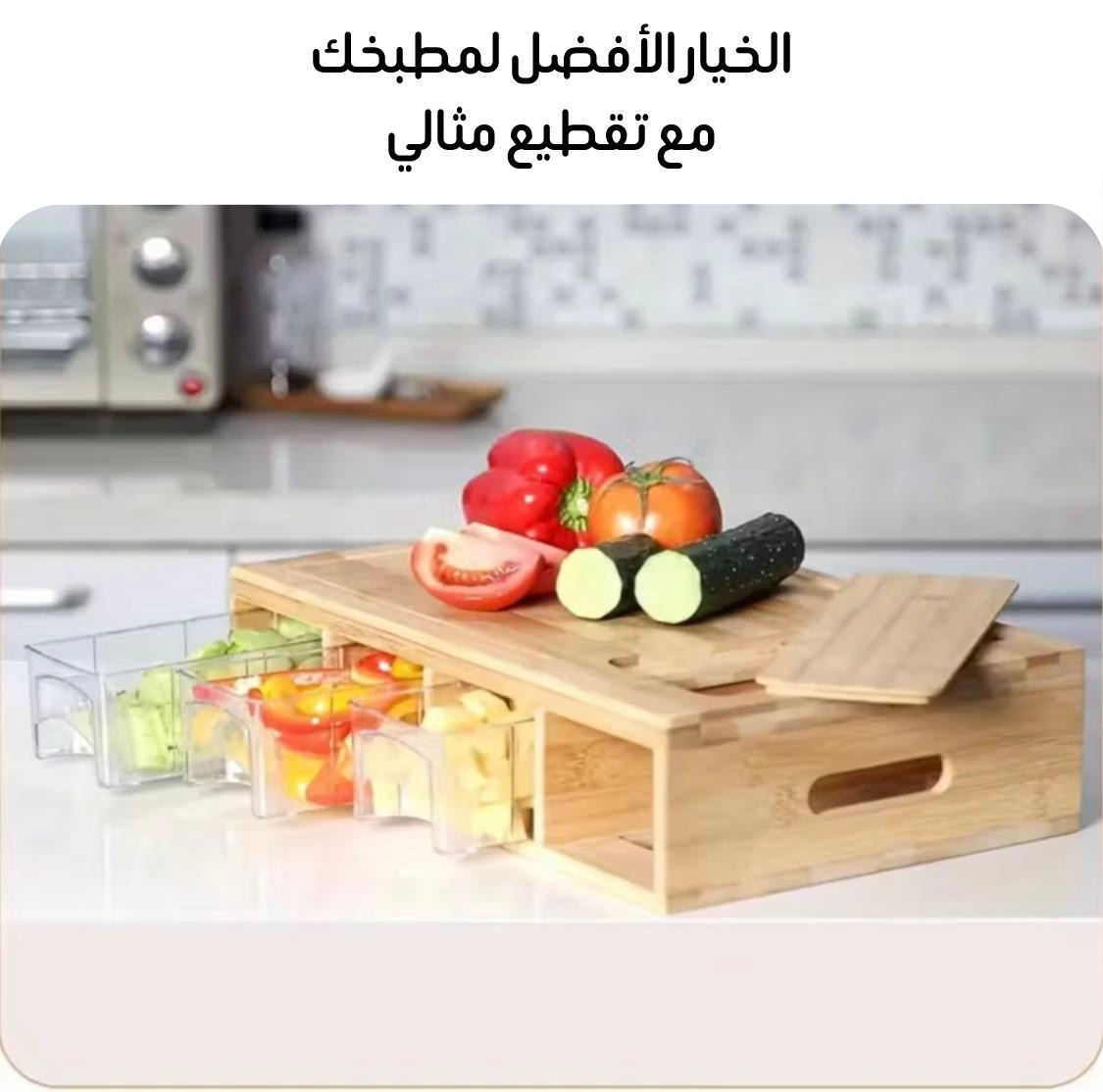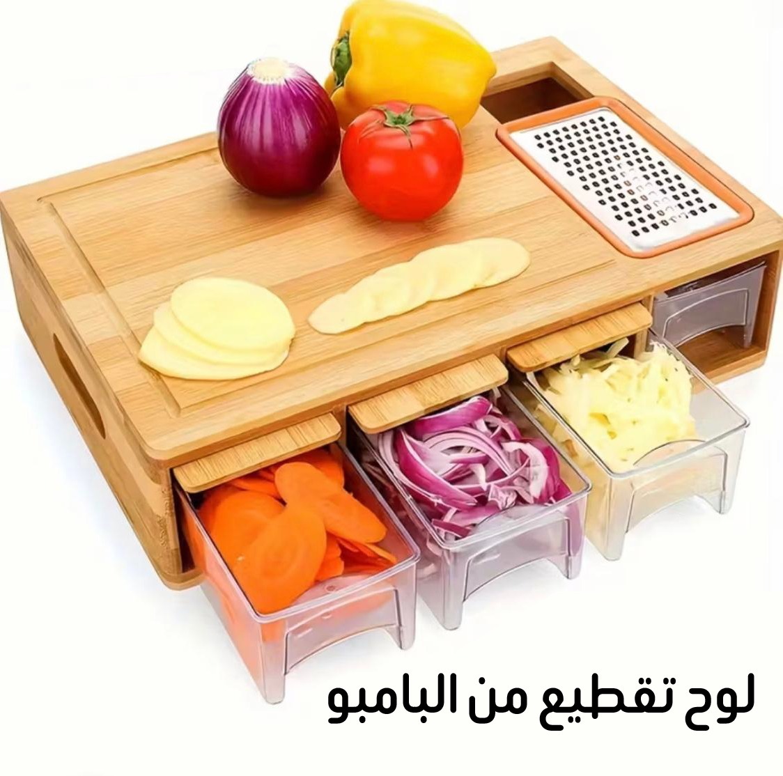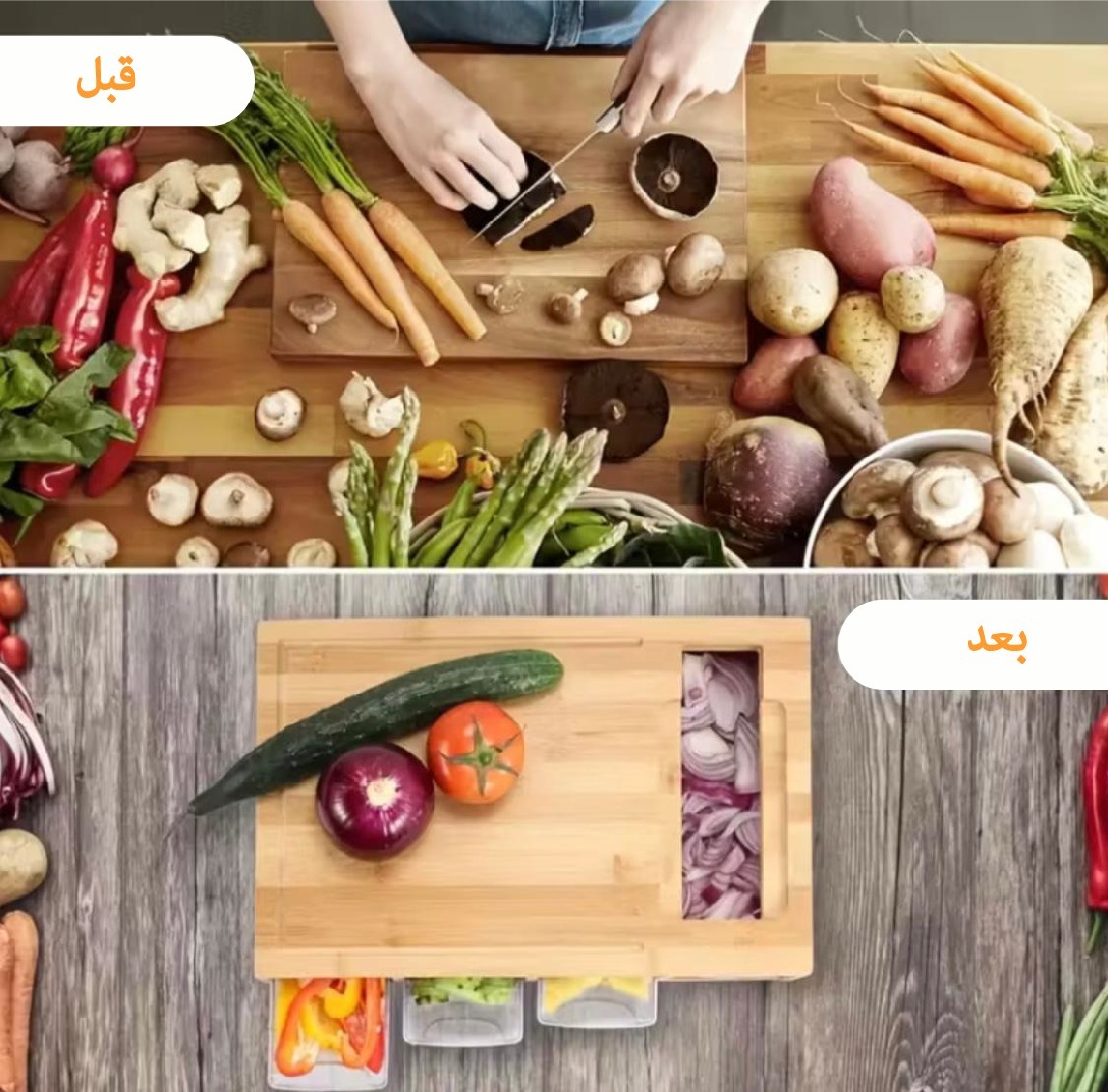 مصنوع من ساق البامبو المتين الذي يمنحك شكلاً أنيقًا ومتانة تدوم، بينما يسهّل الدرج المنزلق عملية نقل الخضار والفواكه المقطّعة بدون فوضى.