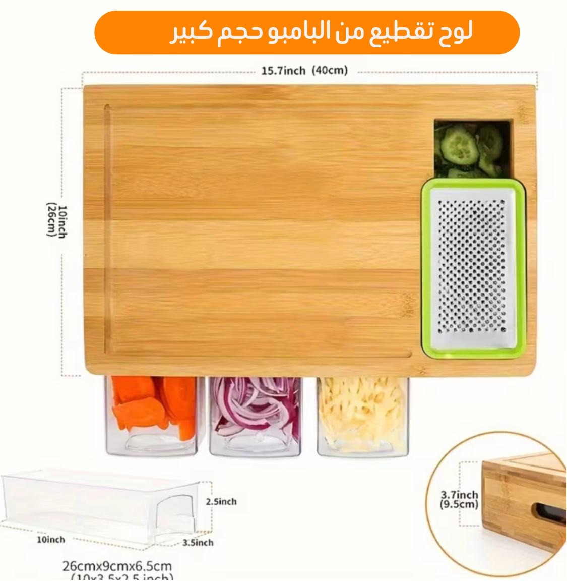 يتميز هذا اللوح بتصميم ذكي يجمع بين المبشرة العالية الجودة والصواني المغطاة التي تساعدك على حفظ المكونات المنظمة مباشرة أثناء التحضير.