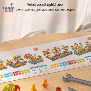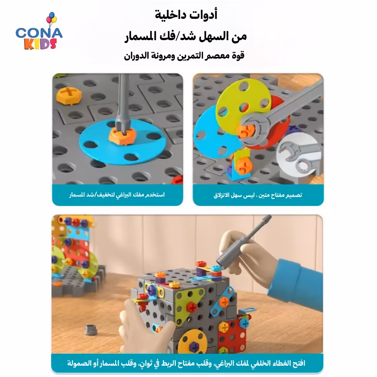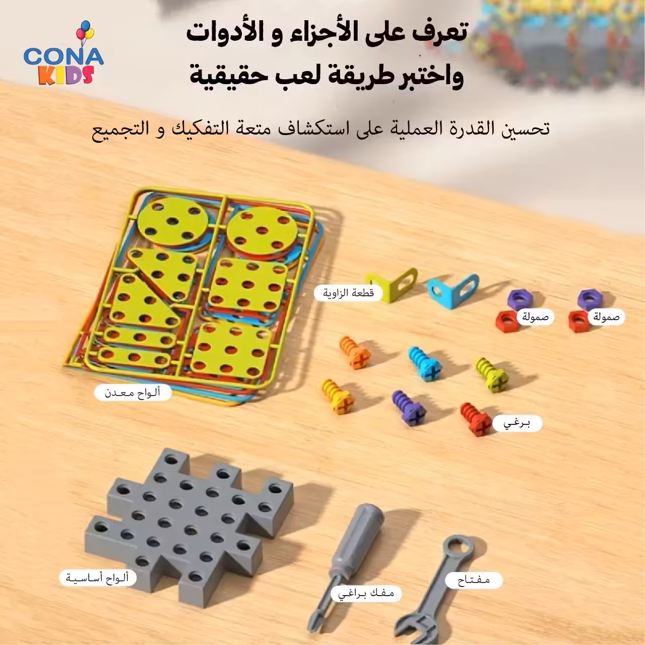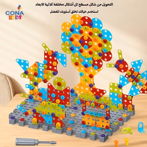 تتكون من قطع بلاستيكية أو معدنية ذات أشكال هندسية متنوعة، مصممة لتكون ملونة بشكل قوس قزح، مما يضيف جمالية وتنوعاً للممارسة. – المواد الرئيسية: بولي بروبيلين. – كل قطعة يتم تصميمها لتتناسب مع القطع الأخرى بشكل يسمح ببنائها على مستوى ثلاثي الأبعاد، – من الممكن إنشاء تصاميم معمارية ثلاثية الأبعاد، مثل الجسور، المباني، والأشكال الهندسية المختلفة. – يمكن استخدام هذه اللعبة لتعليم الأطفال مفاهيم الأبعاد والقياسات والأشكال الهندسية.