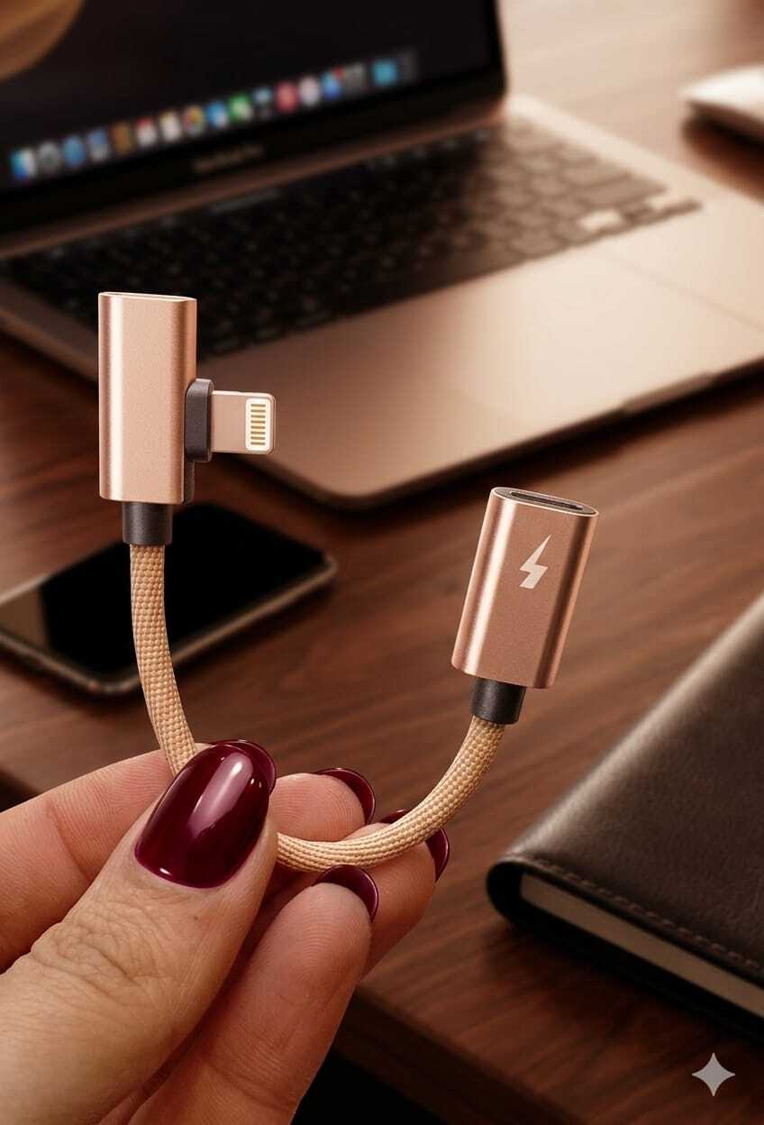 الوظيفة المزدوجة: يتيح لك منفذين؛ واحد لشحن الهاتف والآخر لتوصيل سماعات الأذن (Lightning).
