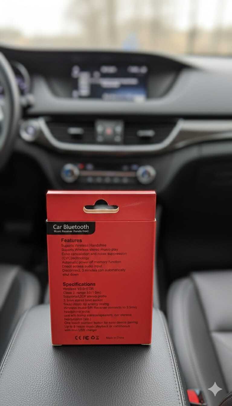 مستقبل بلوتوث AUX للسيارة يتيح لك تشغيل الموسيقى وإجراء المكالمات لاسلكيًا عبر نظام الصوت في سيارتك. يتم توصيله بسهولة عبر منفذ AUX (3.5mm) ويعمل مع جميع الهواتف الذكية الداعمة للبلوتوث.