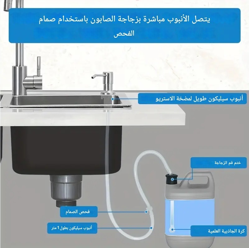 ✔ أنبوب سيليكون بطول 1 متر لسهولة الاستخدام وضخ الصابون بسلاسة.