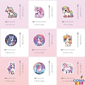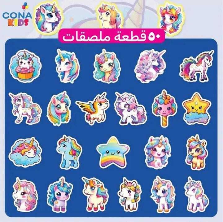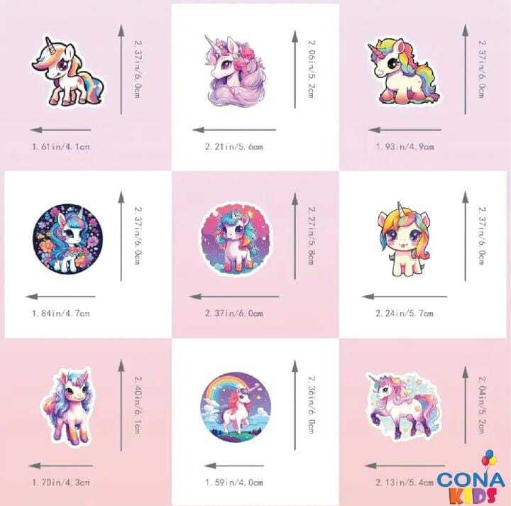 – 50 قطعة ملونة من ملصقات اليونيكورن الكرتونية التي تضيف لمسة من المرح والجمال لأي شيء تختارينه لتزيينه.