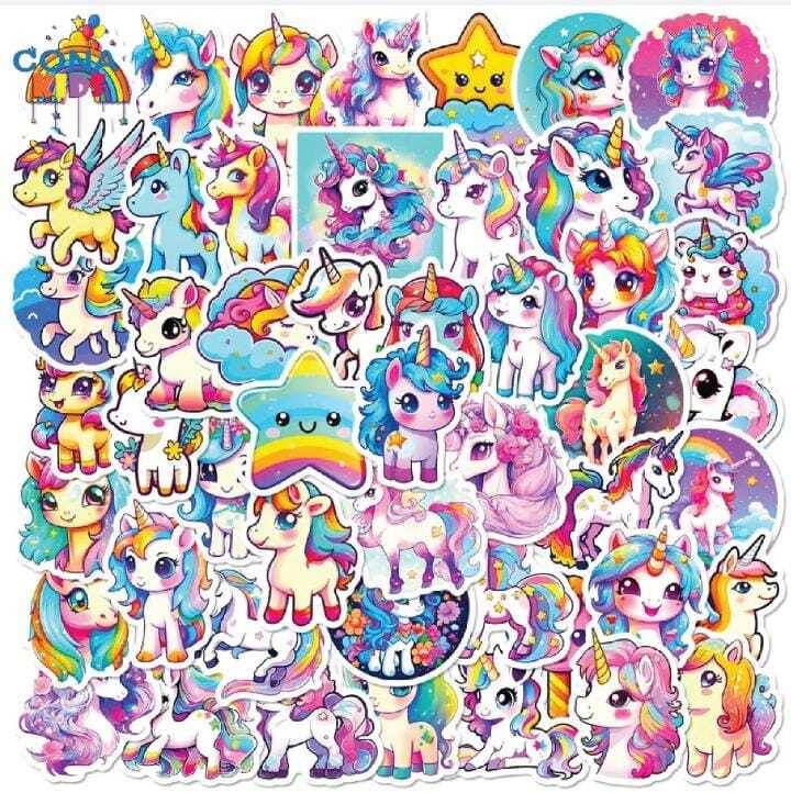✨ 50 قطعة ملصقات يونيكورن كرتونية ملونة – لمسة من السحر في كل مكان! 🦄✨