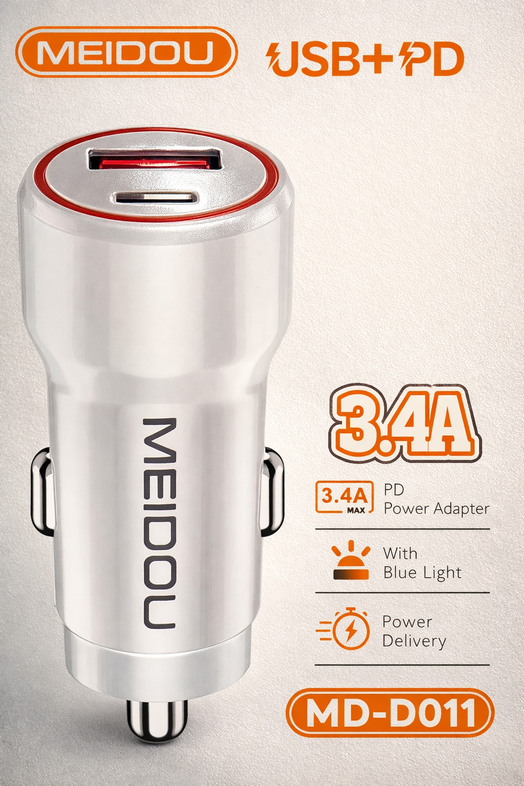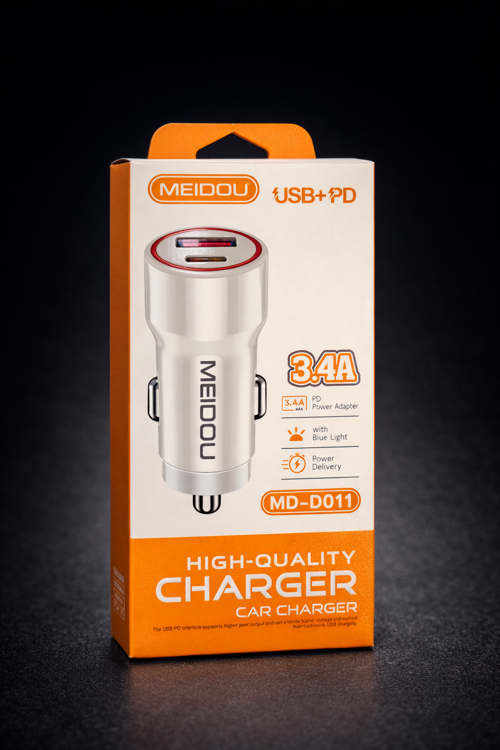 شاحن سيارة MEIDOU MD-D011 ، شاحن عالي الجودة بمخرج 3.4 أمبير مصمم لمقبس ولاعة السجائر في السيارة.