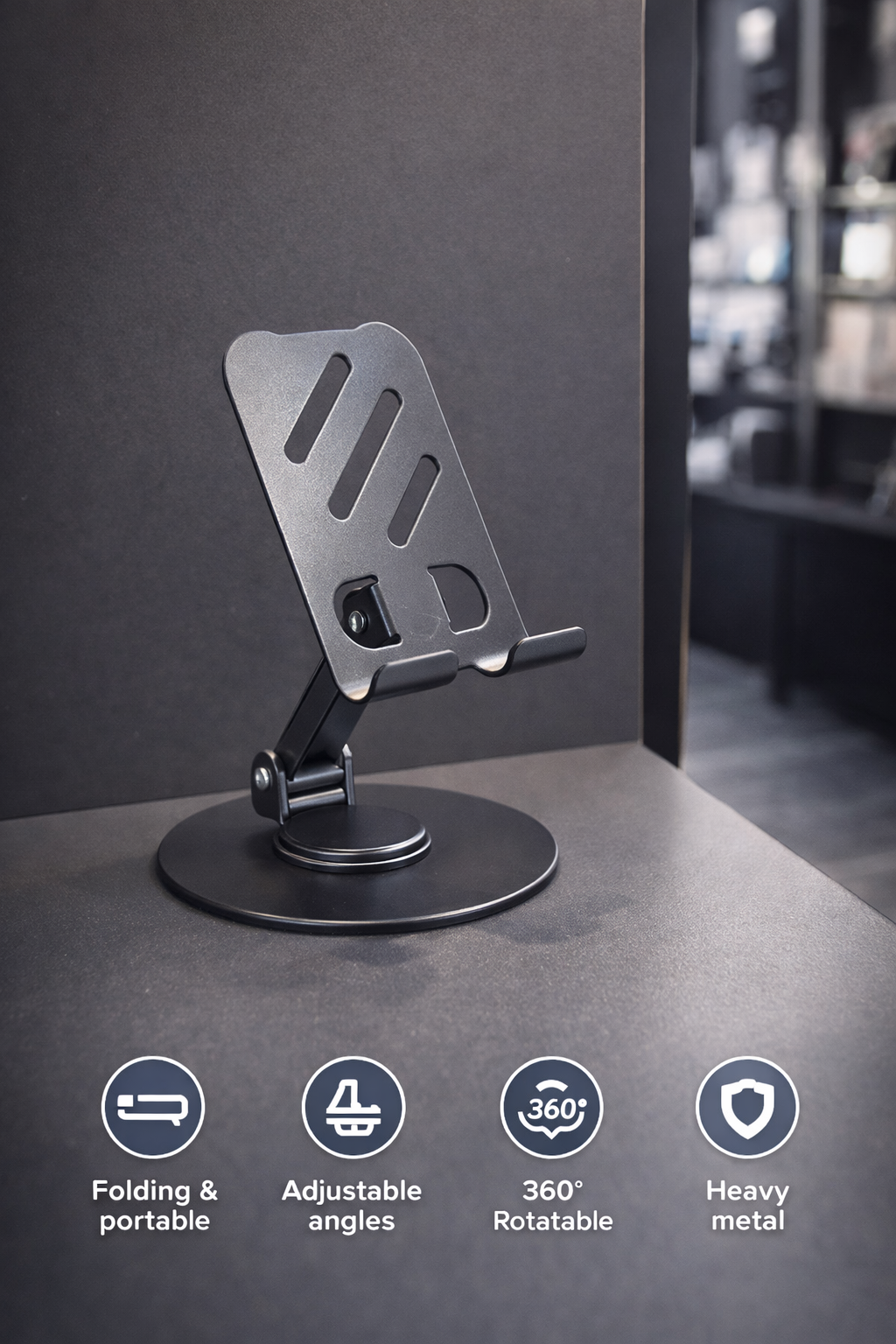 حامل الطاولة المعدني TPS-MC173 متعدد الوظائف من TOPUPSO. تصميم قابل للطي، مريح للحمل، وتعديل 360 درجة لأي زاوية تريدها! الحل الأمثل لراحتك.