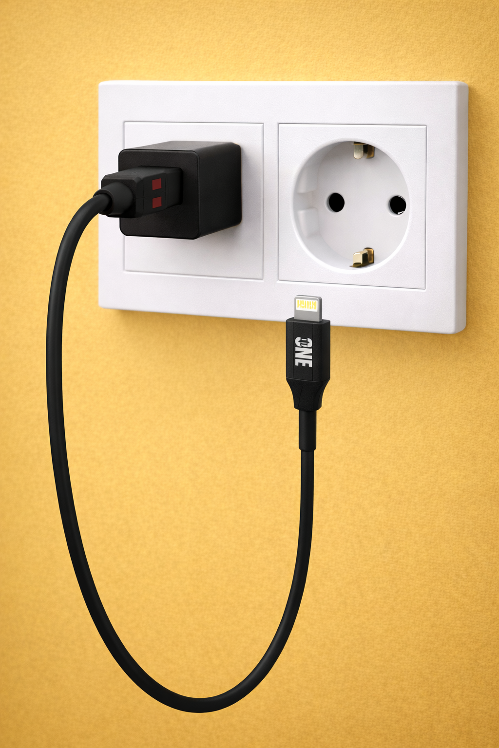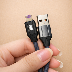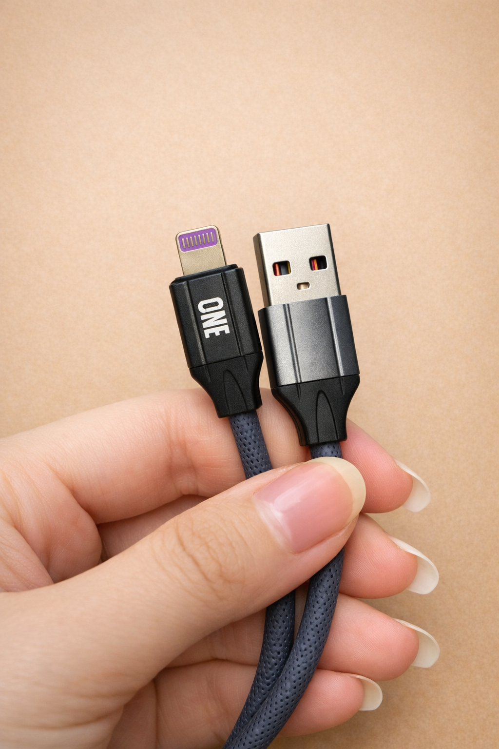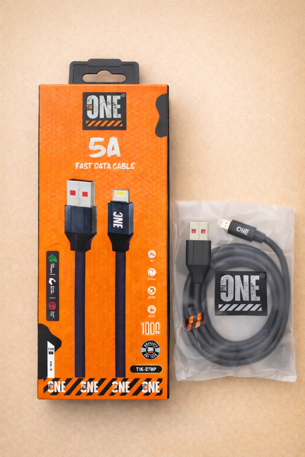 كابل البيانات السريع ONE TIK 5A (طراز TIK-278P) كابل مصمم للشحن فائق السرعة ونقل البيانات، ويتميز بموصلات USB قياسية وموصل من نوع lightning للايفون