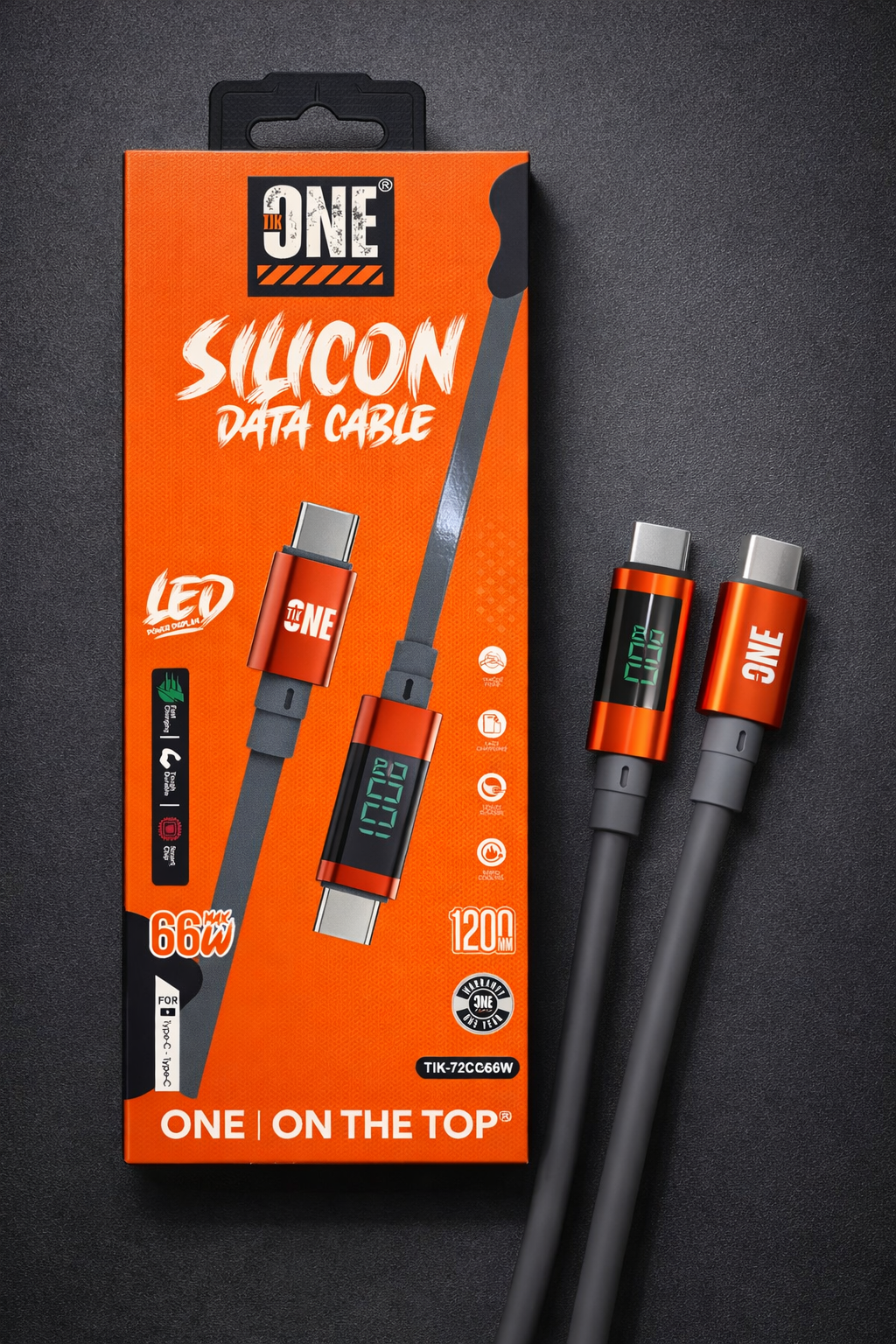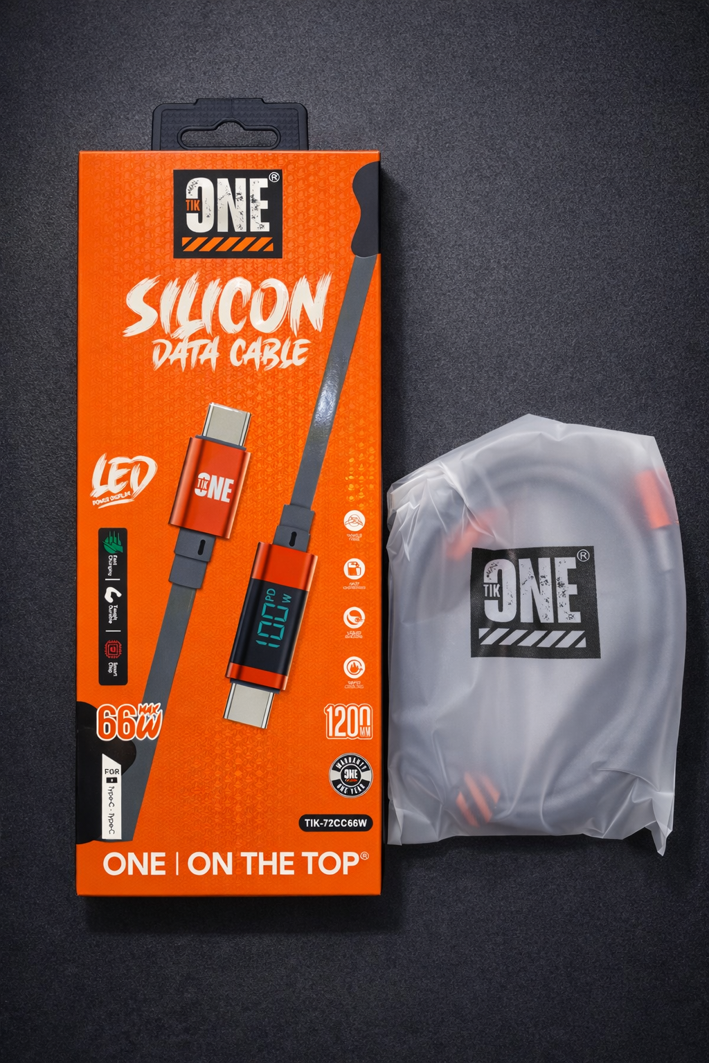 وصلة تايب سي ONE Tik Silicon Data Cable 66w – قوة وسرعة في كابل واحد! استمتع بشحن فائق السرعة مع تصميم مرن ومتين من السيليكون وإضاءة LED عصرية.